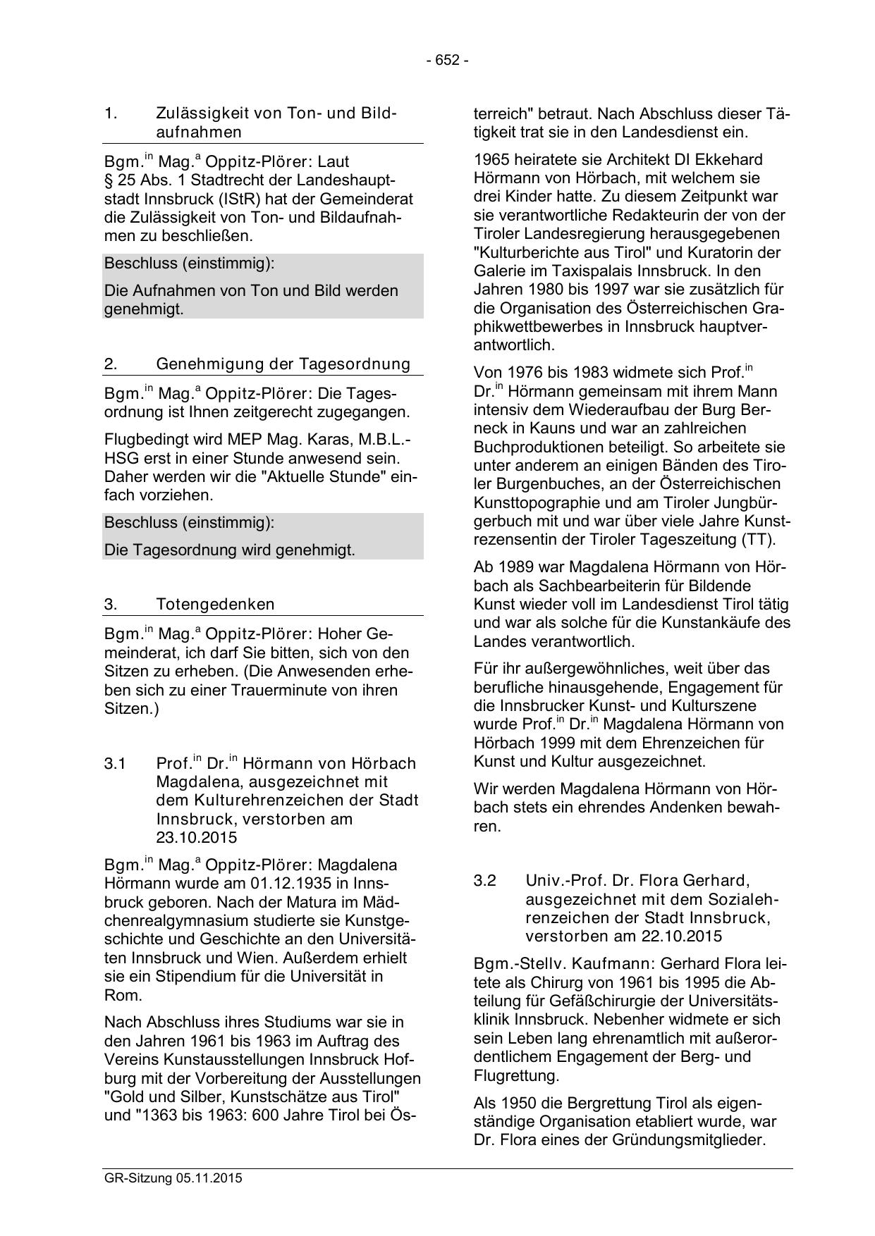 § 25 Abs. 1 Stadtrecht der Landeshauptstadt Innsbruck (IStR) hat der Gemeinderat