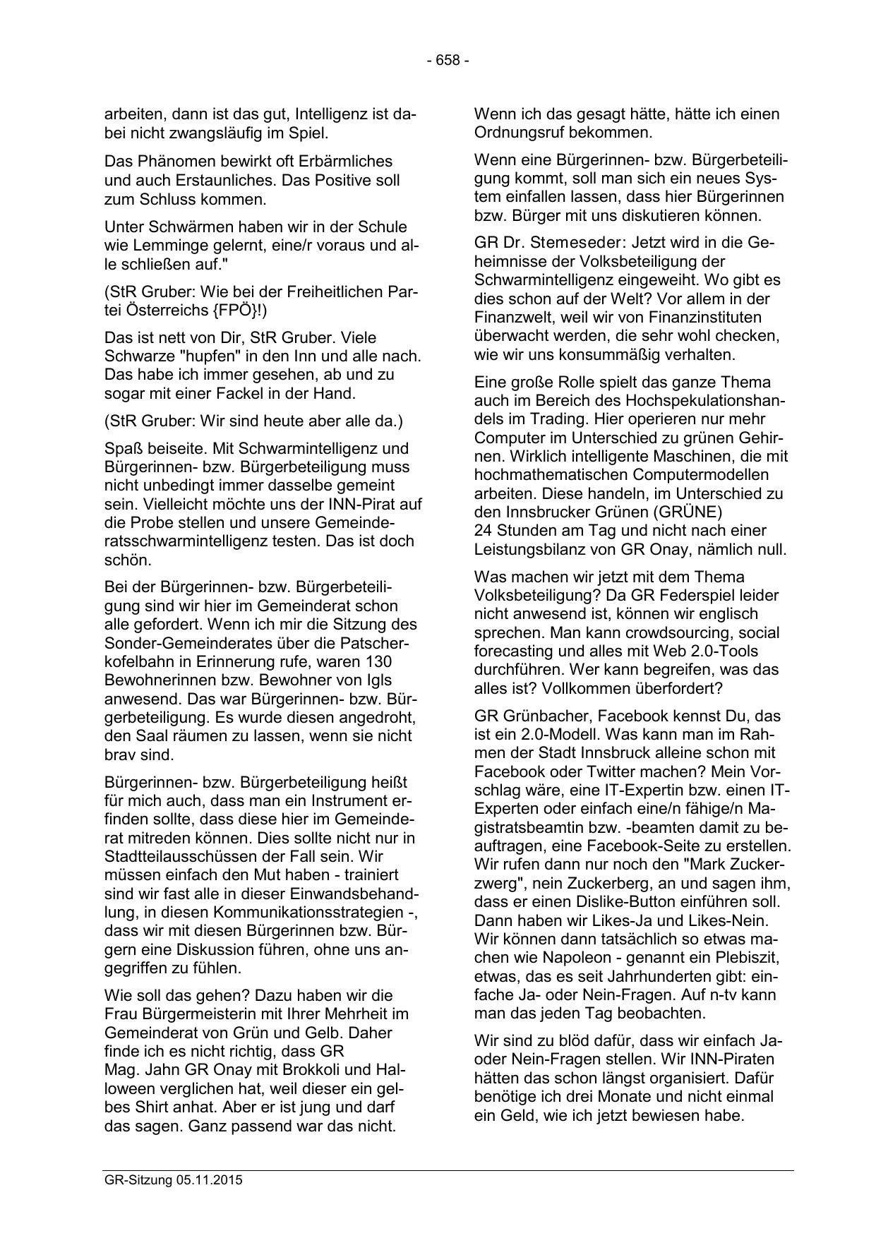für mich auch, dass man ein Instrument erfinden sollte, dass diese hier im Gemeinderat mitreden können. Dies sollte nicht nur in