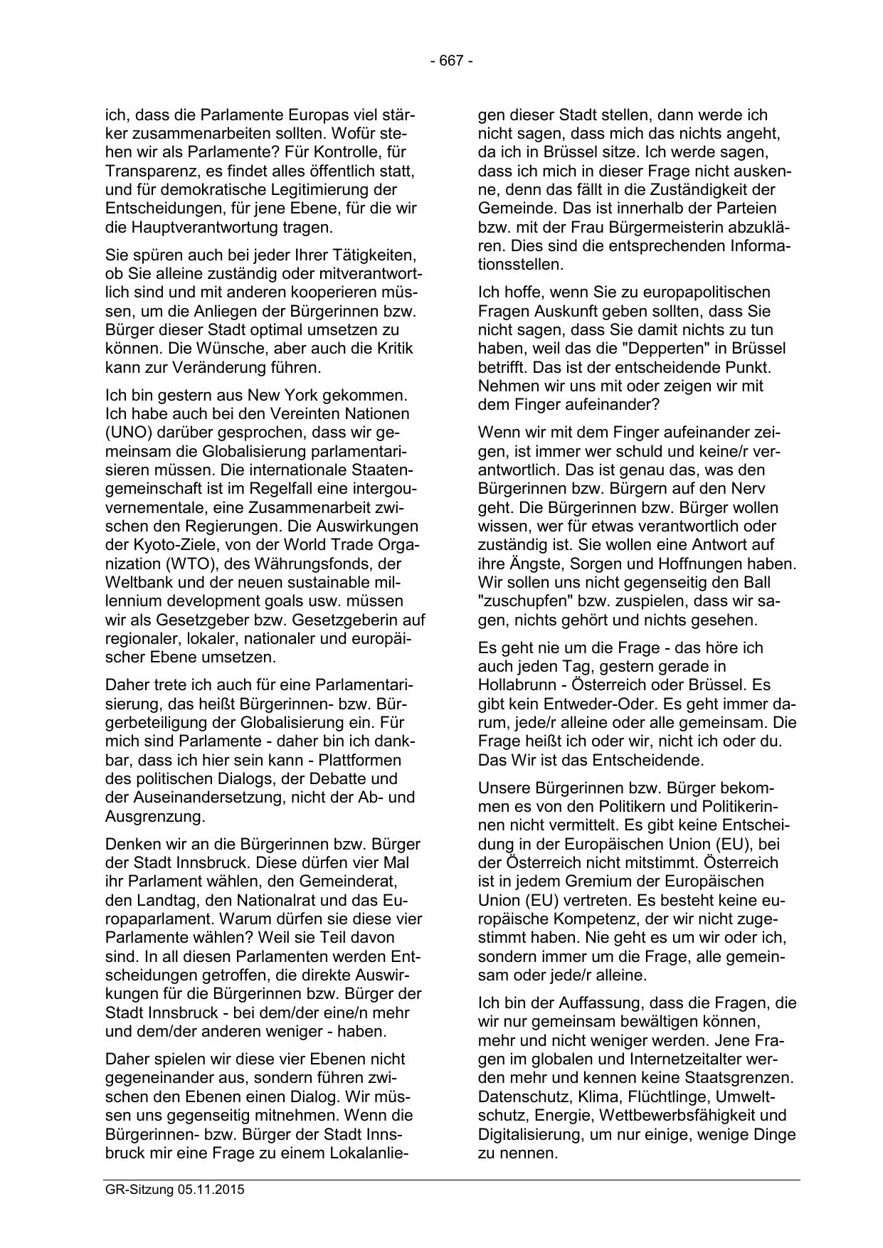 Bürgerinnen- bzw. Bürger der Stadt Innsbruck mir eine Frage zu einem LokalanlieGR-Sitzung 05.11.2015