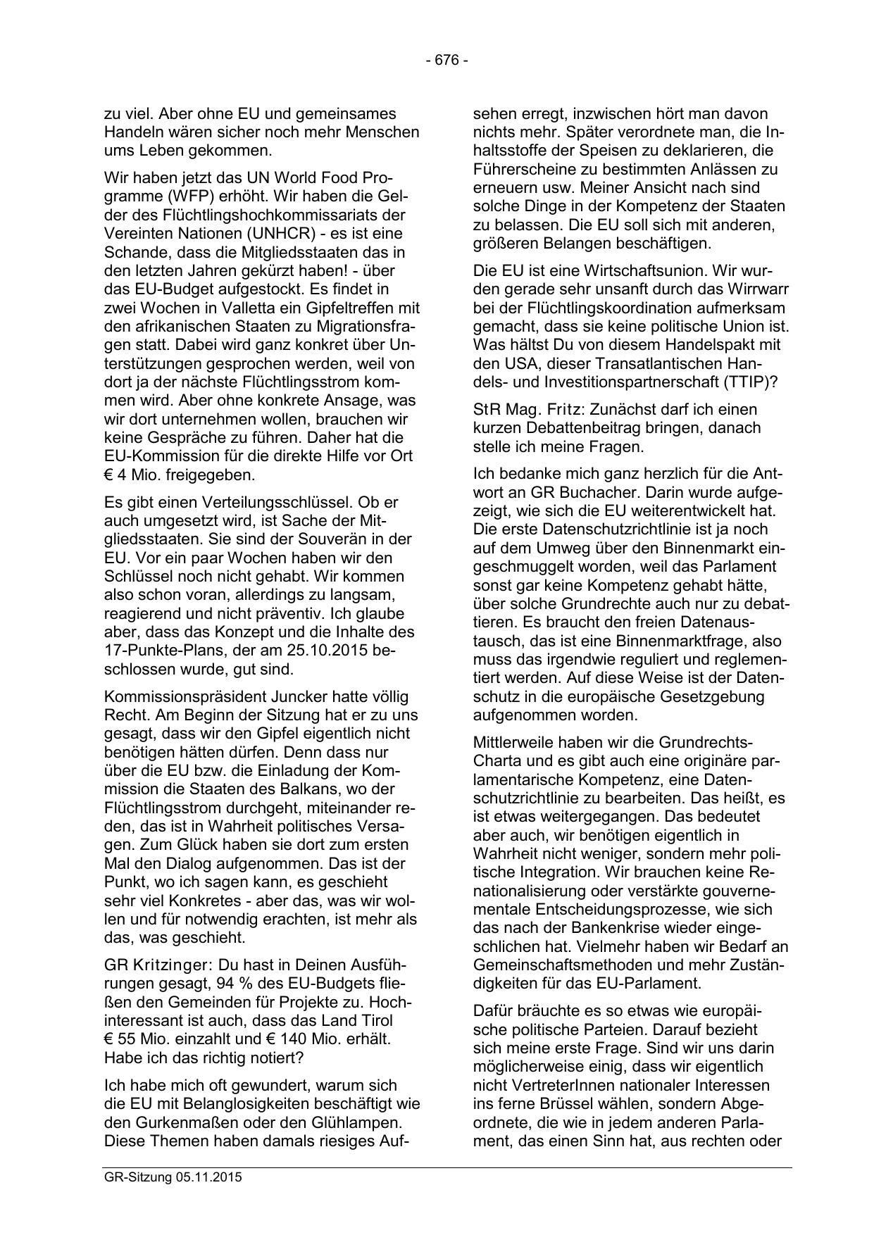 Ich bedanke mich ganz herzlich für die Antwort an GR Buchacher. Darin wurde aufgezeigt, wie sich die EU weiterentwickelt hat.