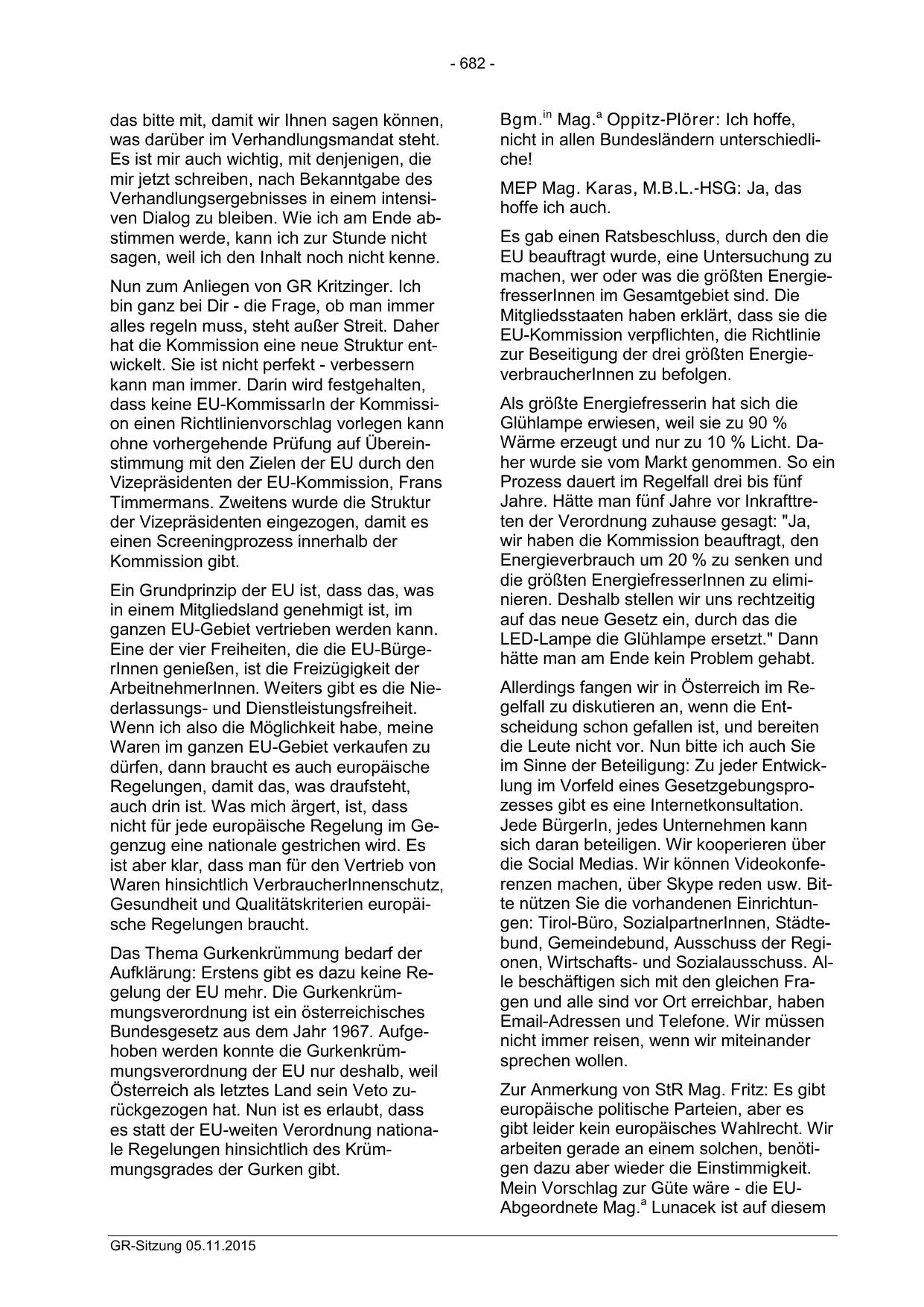 Mein Vorschlag zur Güte wäre - die EUAbgeordnete Mag.a Lunacek ist auf diesem