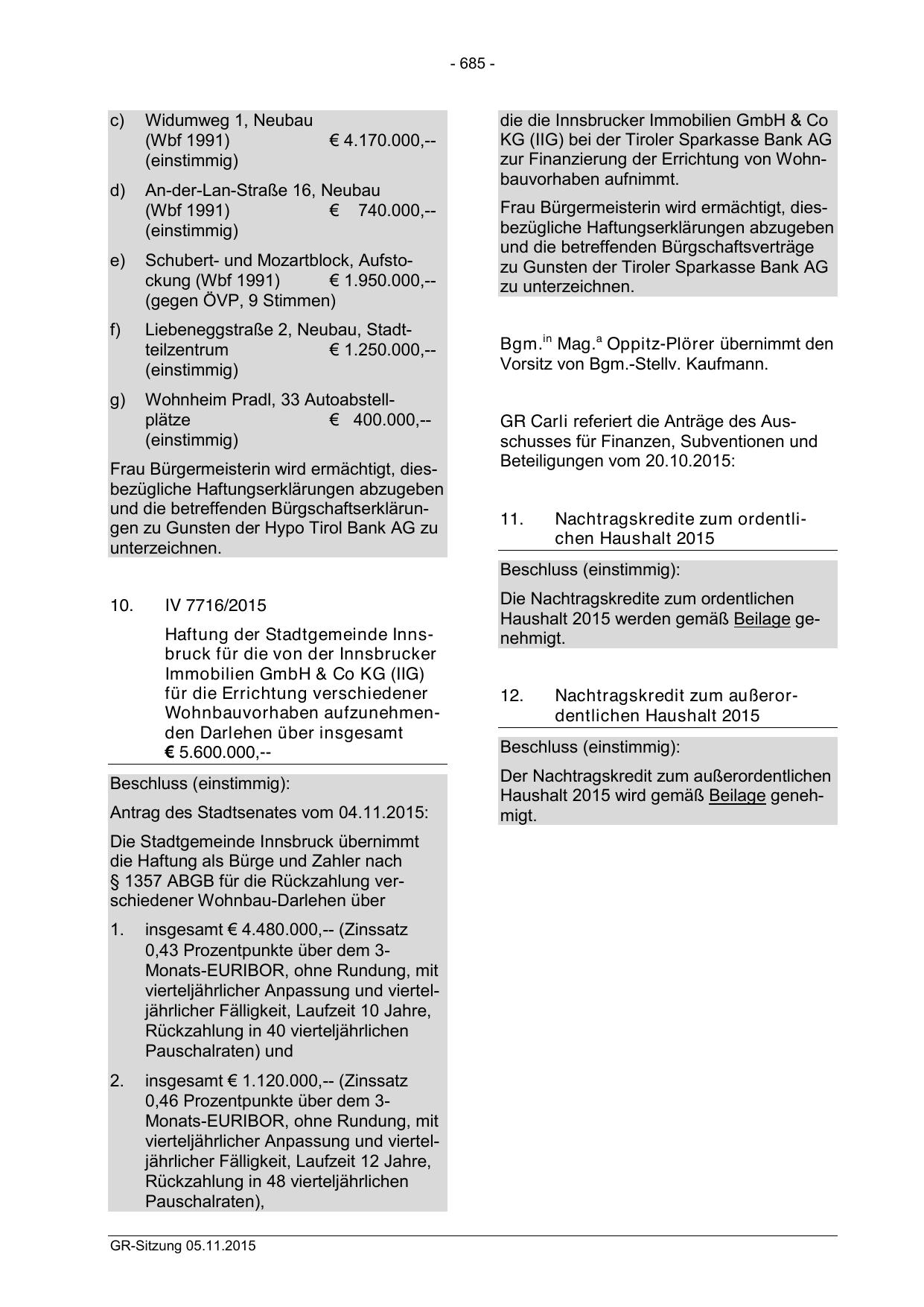 € 1.950.000,-(gegen ÖVP, 9 Stimmen)