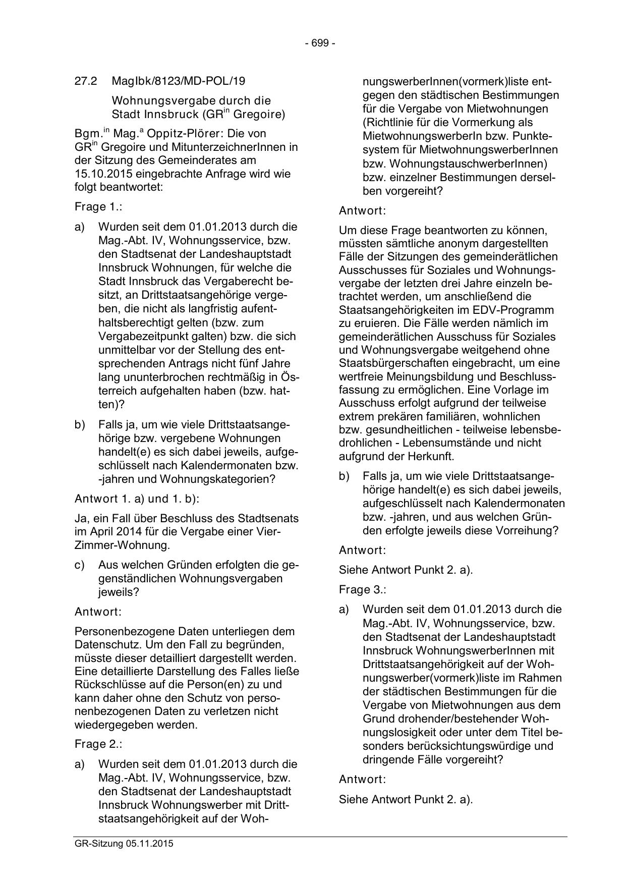 Stadt Innsbruck das Vergaberecht besitzt, an Drittstaatsangehörige vergeben, die nicht als langfristig aufenthaltsberechtigt gelten (bzw. zum