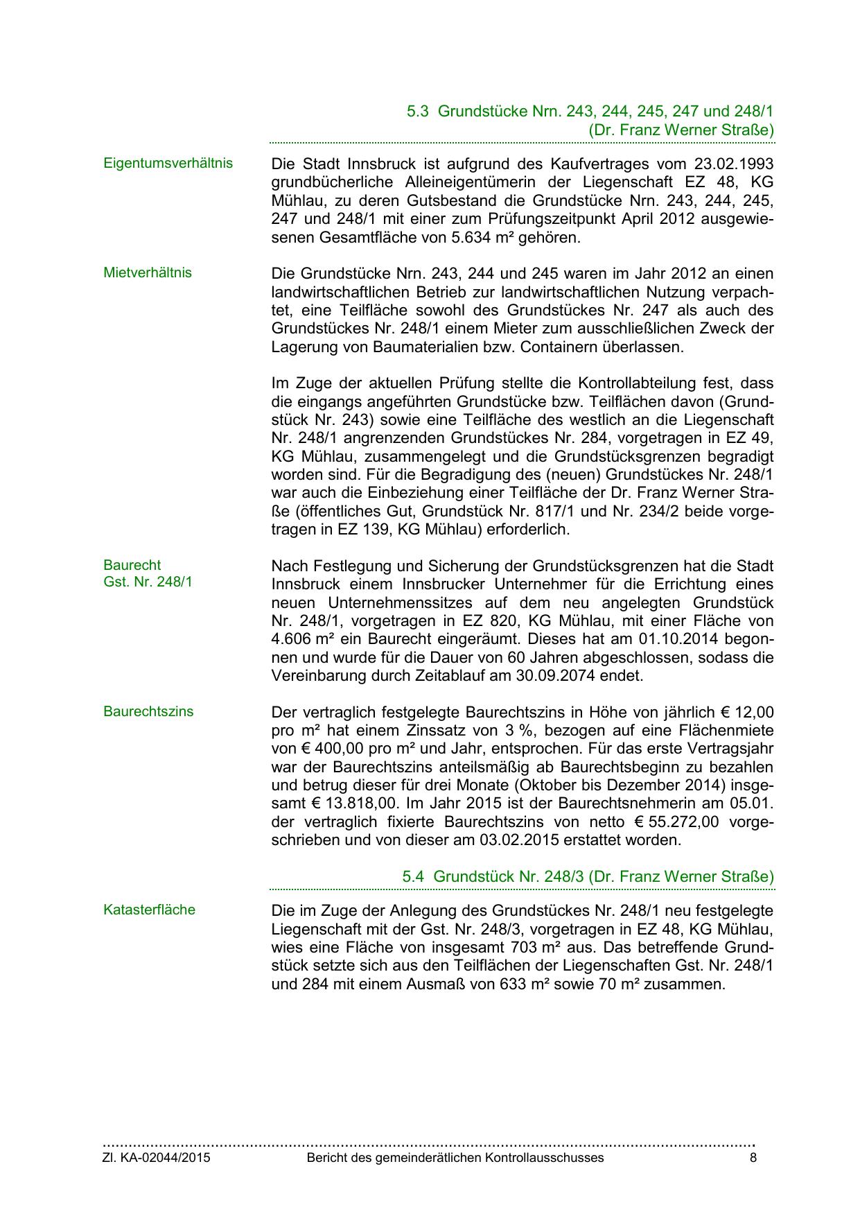 247 und 248/1 mit einer zum Prüfungszeitpunkt April 2012 ausgewiesenen Gesamtfläche von 5.634 m² gehören.