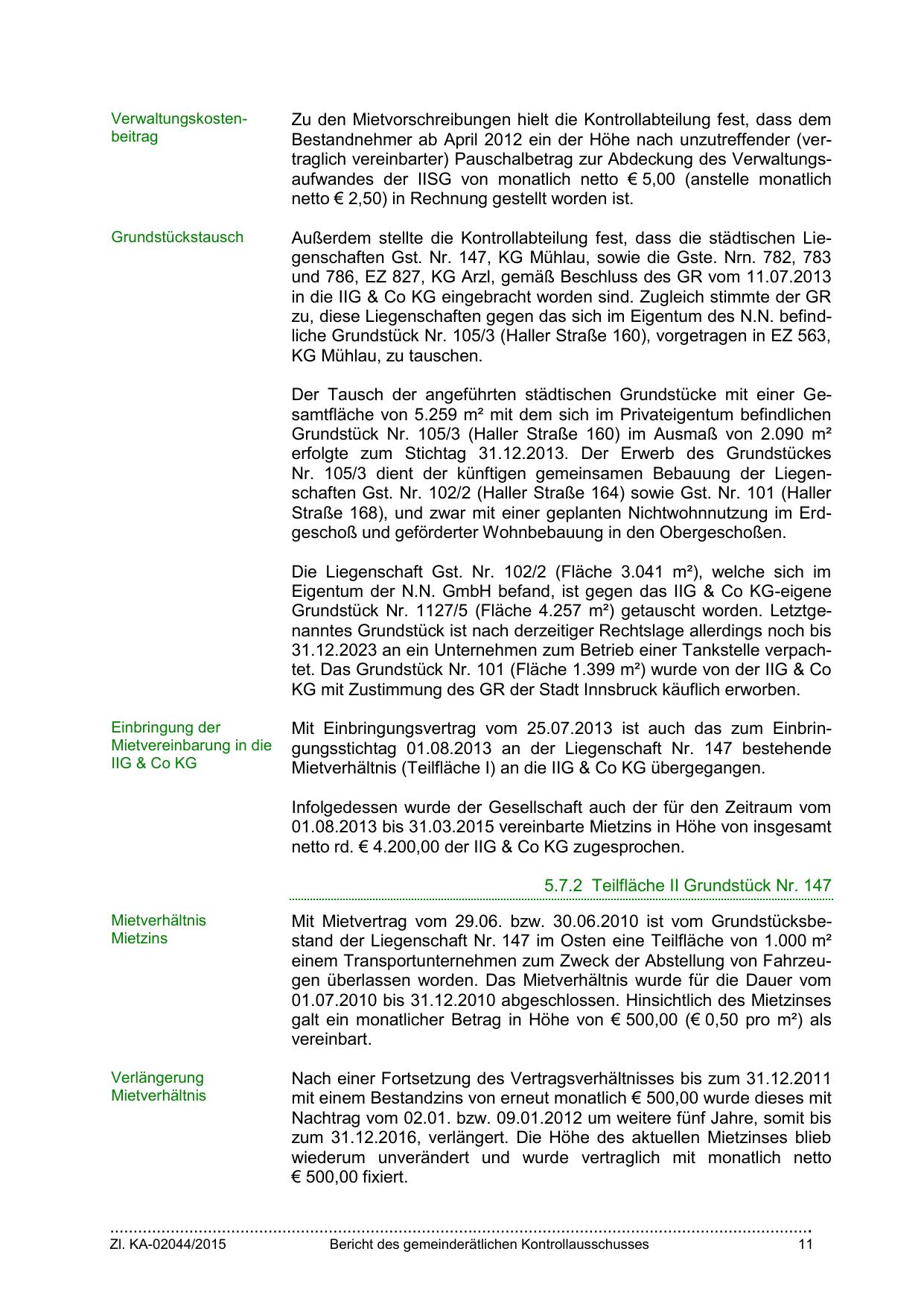 Außerdem stellte die Kontrollabteilung fest, dass die städtischen Liegenschaften Gst. Nr. 147, KG Mühlau, sowie die Gste. Nrn. 782, 783