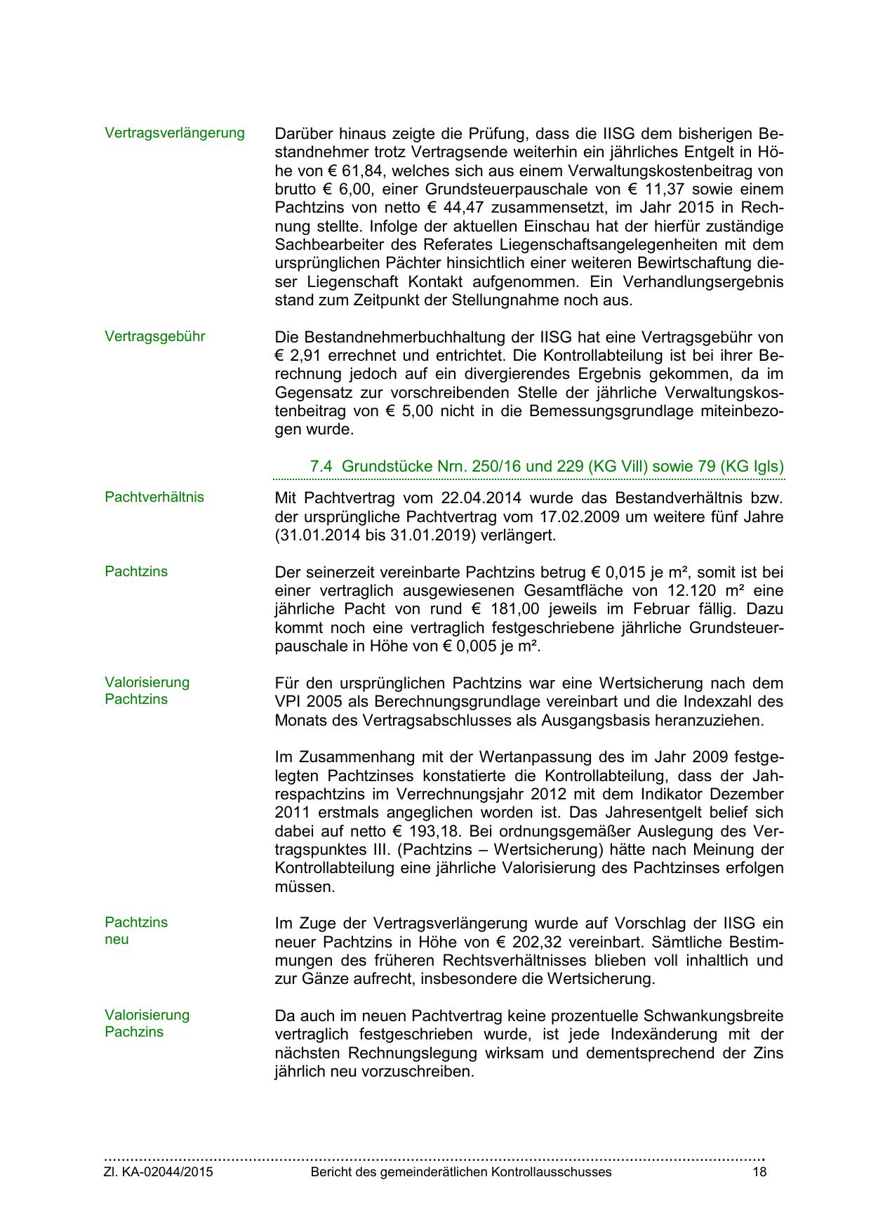 Pachtzins von netto € 44,47 zusammensetzt, im Jahr 2015 in Rechnung stellte. Infolge der aktuellen Einschau hat der hierfür zuständige