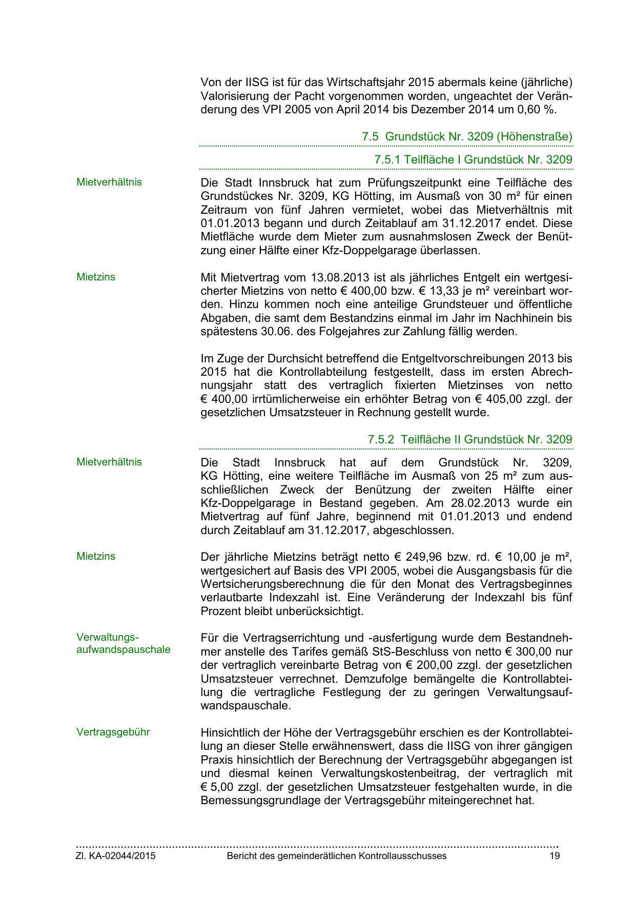 Die Stadt Innsbruck hat zum Prüfungszeitpunkt eine Teilfläche des