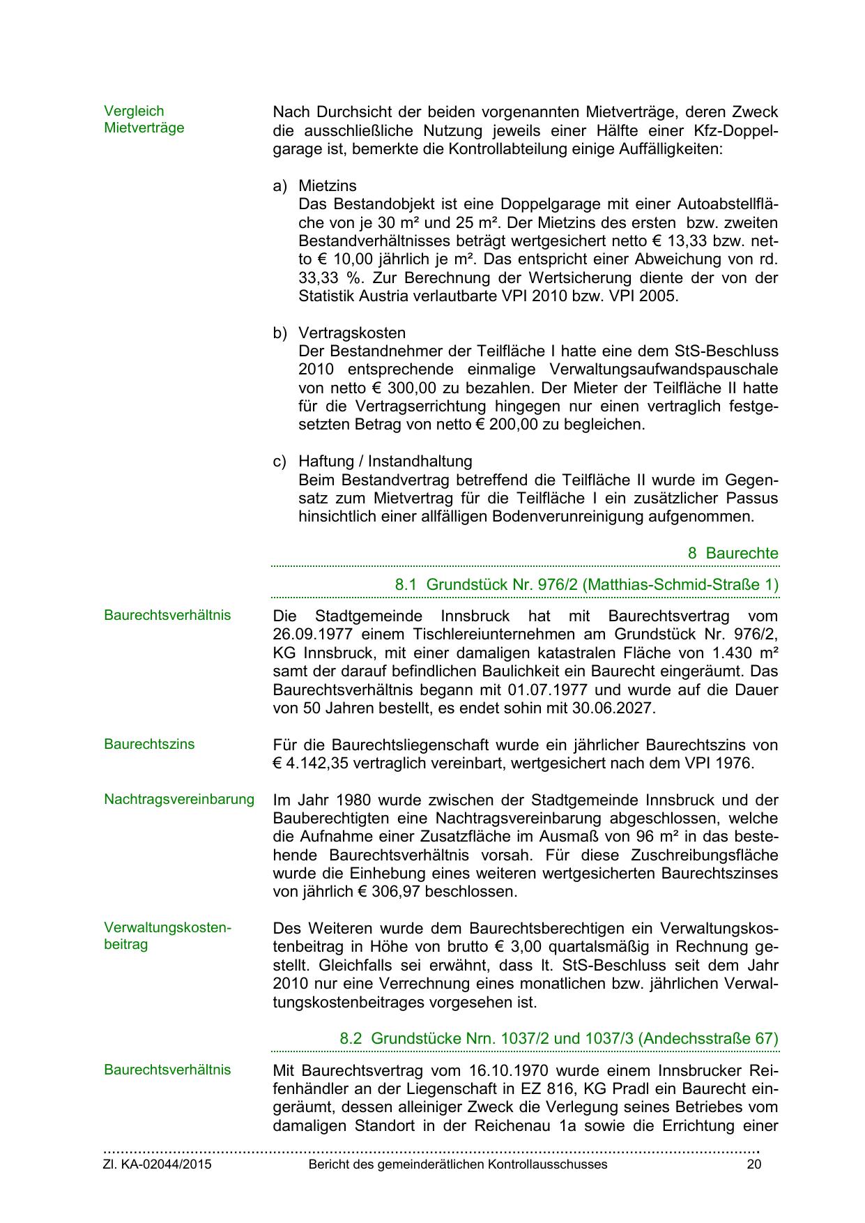 Bestandverhältnisses beträgt wertgesichert netto € 13,33 bzw. netto € 10,00 jährlich je m². Das entspricht einer Abweichung von rd.