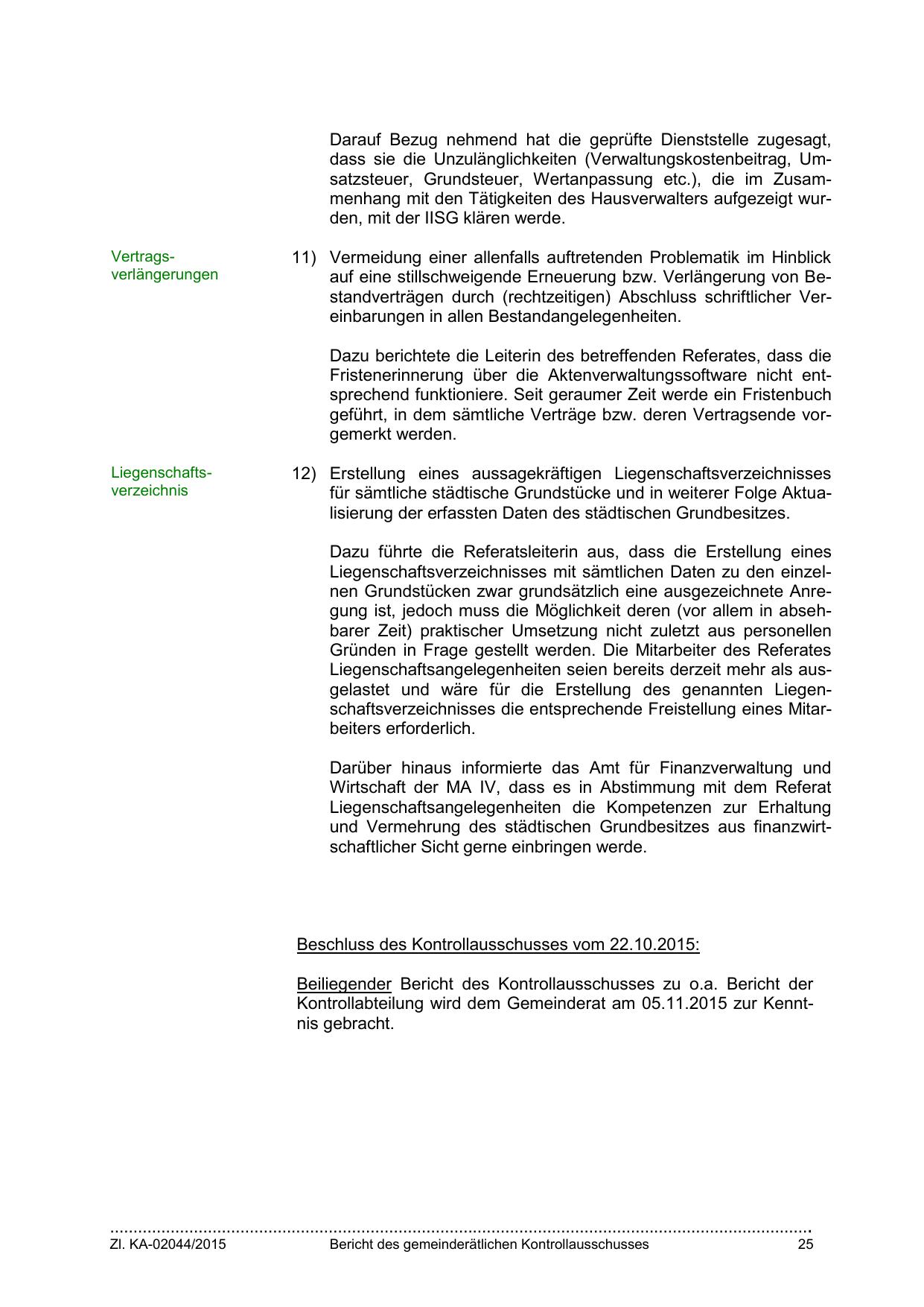 Beschluss des Kontrollausschusses vom 22.10.2015: