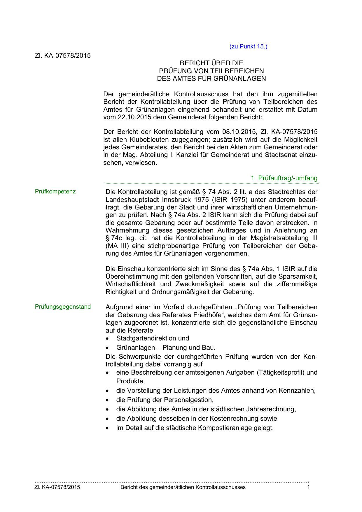 Landeshauptstadt Innsbruck 1975 (IStR 1975) unter anderem beauftragt, die Gebarung der Stadt und ihrer wirtschaftlichen Unternehmungen zu prüfen. Nach § 74a Abs. 2 IStR kann sich die Prüfung dabei auf