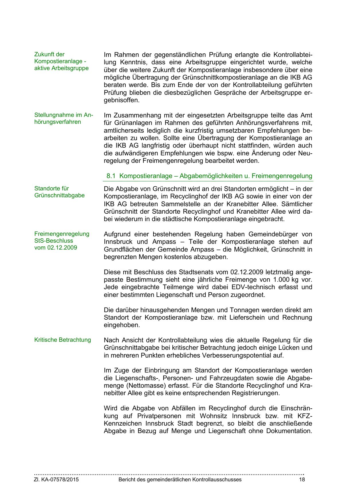 Grünschnitt der Standorte Recyclinghof und Kranebitter Allee wird dabei wiederum in die städtische Kompostieranlage eingebracht.