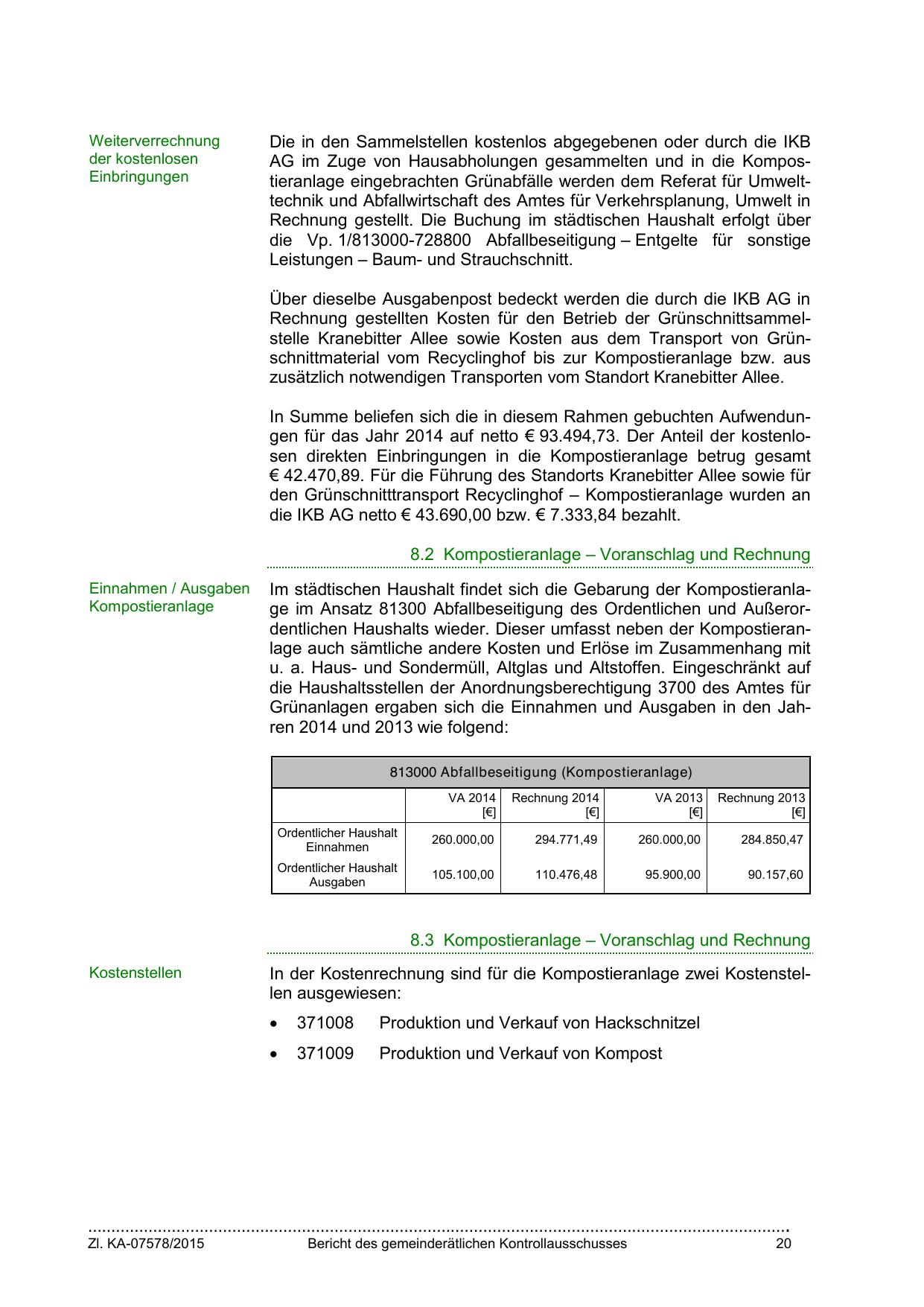 8.3 Kompostieranlage – Voranschlag und Rechnung