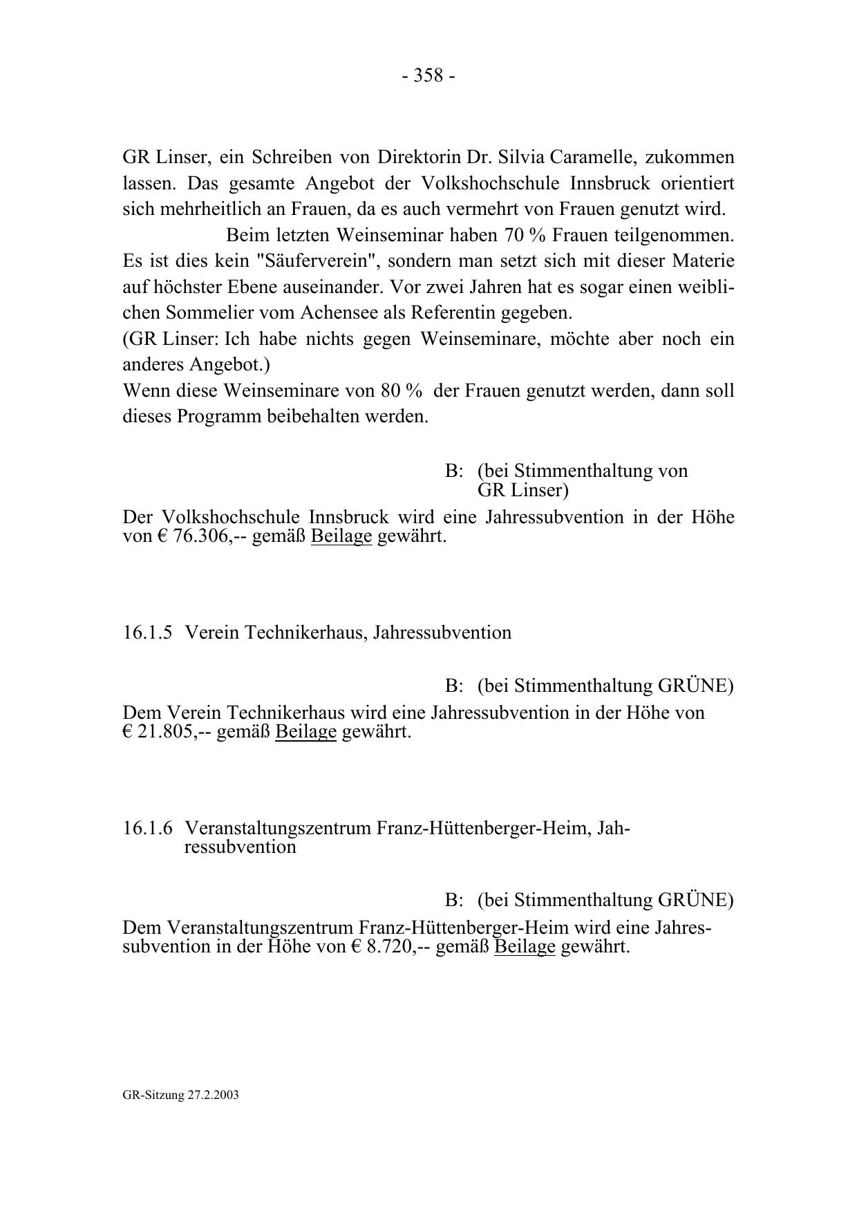 16.1.6 Veranstaltungszentrum Franz-Hüttenberger-Heim, Jahressubvention