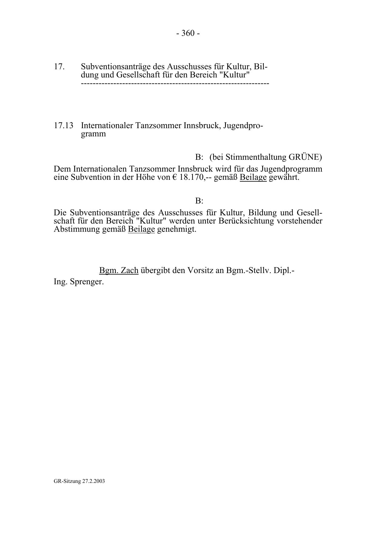 Bgm. Zach übergibt den Vorsitz an Bgm.-Stellv. Dipl.Ing. Sprenger.