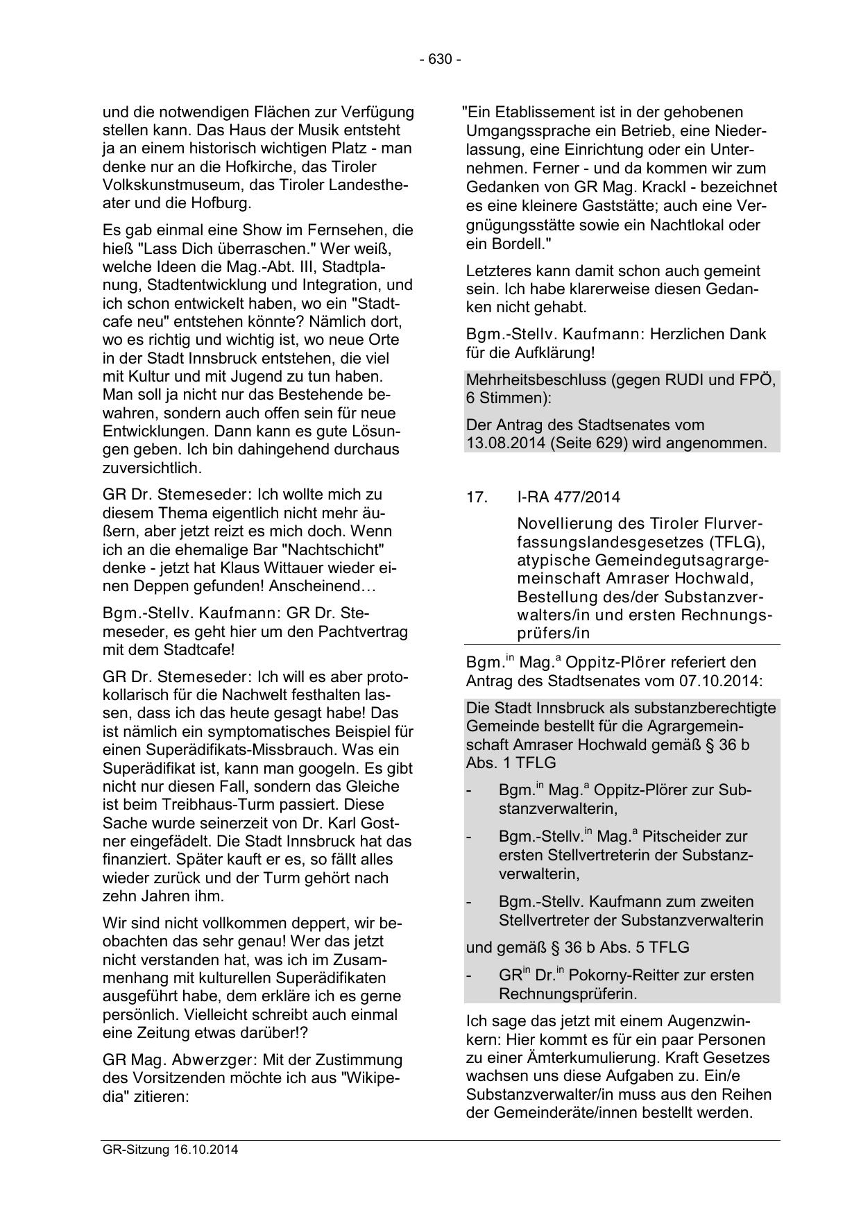 Mehrheitsbeschluss (gegen RUDI und FPÖ,