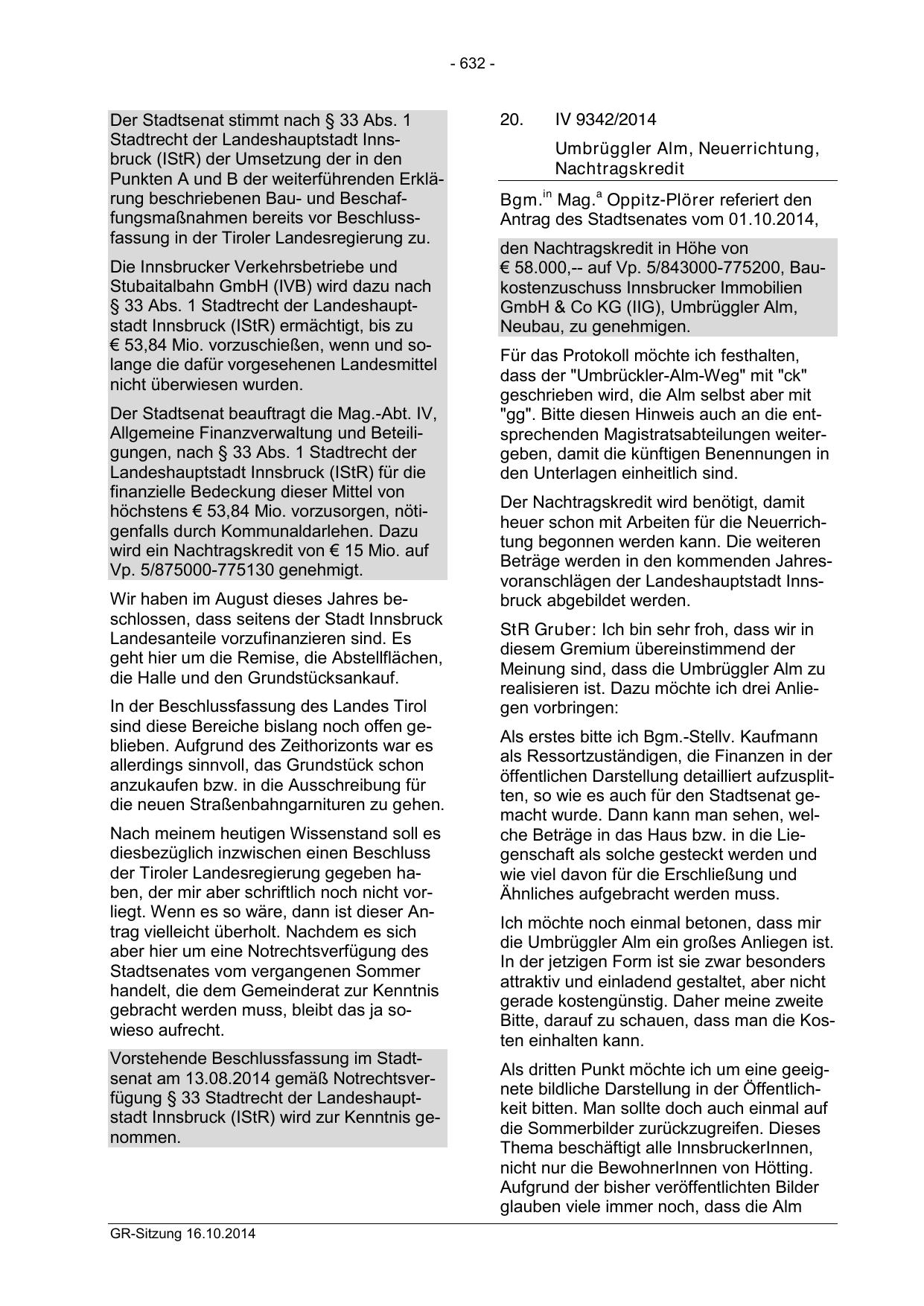 § 33 Abs. 1 Stadtrecht der Landeshauptstadt Innsbruck (IStR) ermächtigt, bis zu