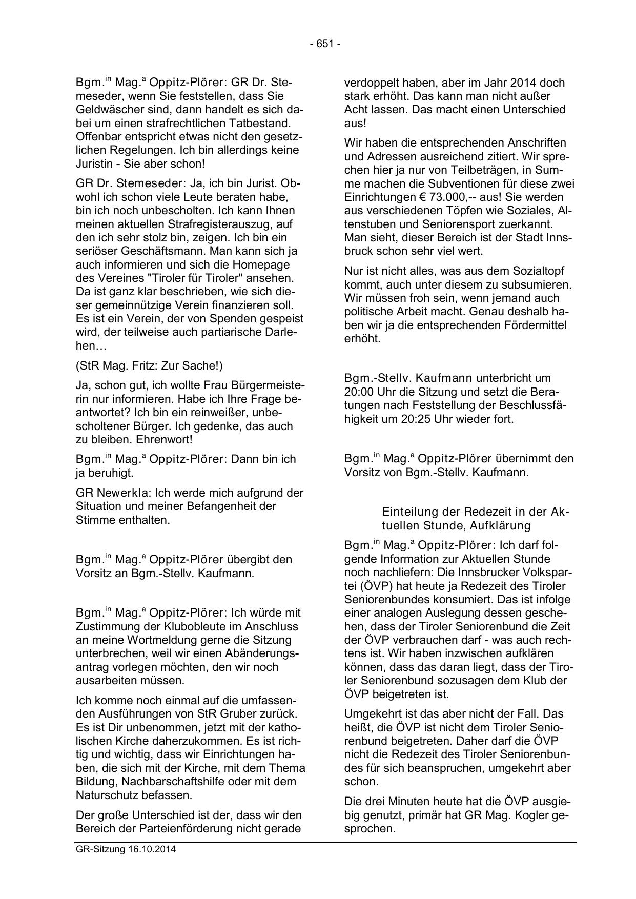 Bgm.in Mag.a Oppitz-Plörer: GR Dr. Stemeseder, wenn Sie feststellen, dass Sie