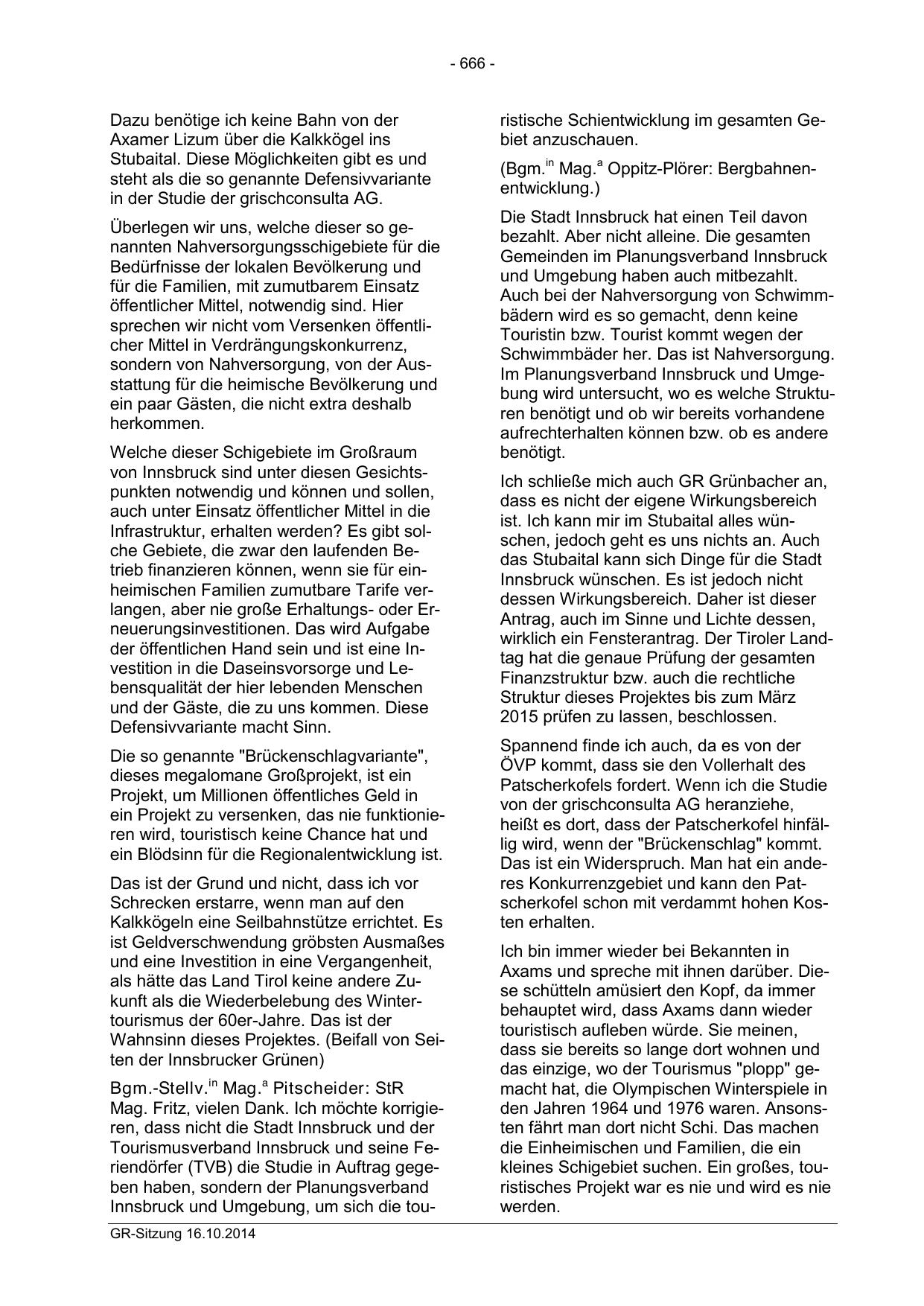 Mag. Fritz, vielen Dank. Ich möchte korrigieren, dass nicht die Stadt Innsbruck und der