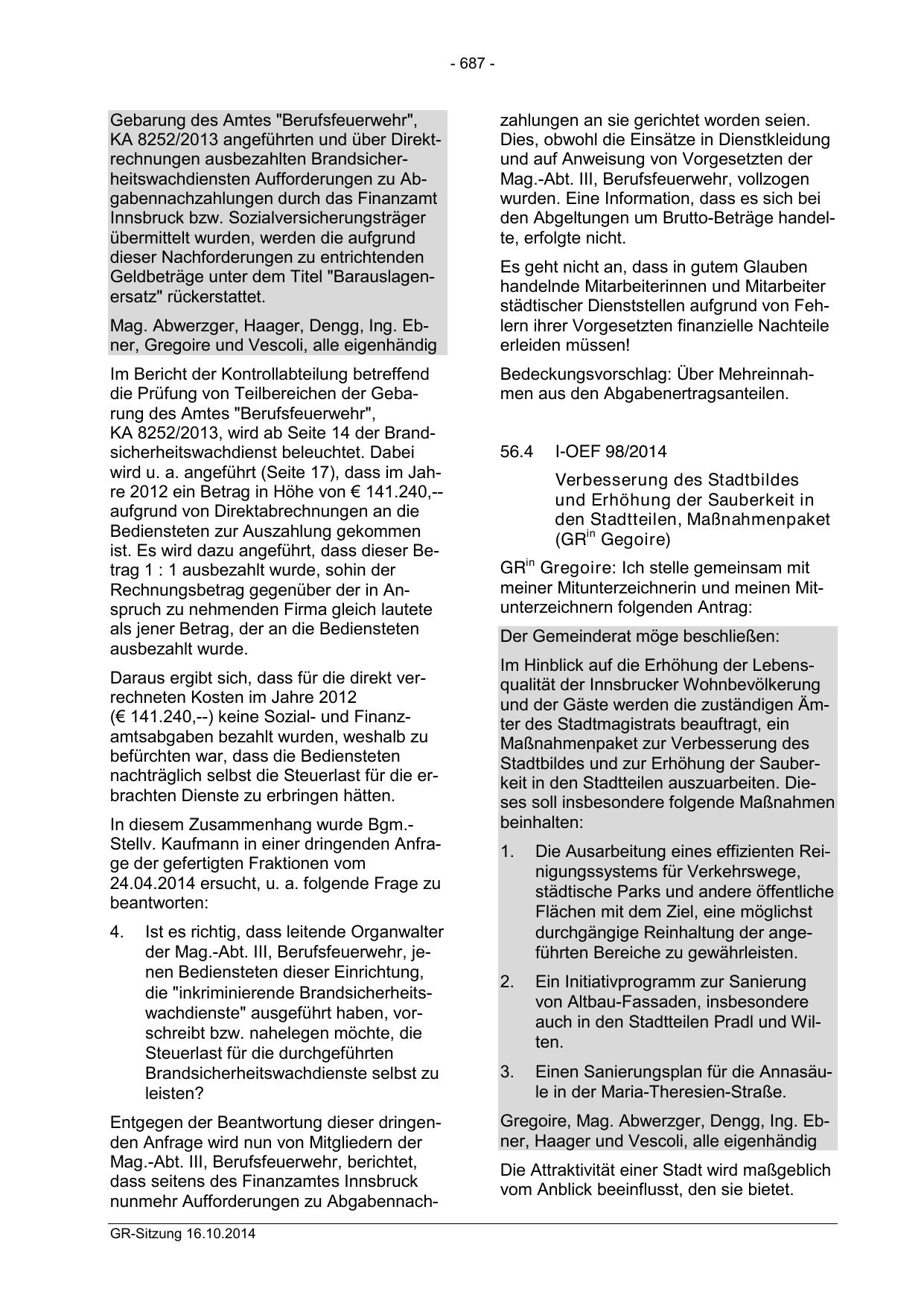 nunmehr Aufforderungen zu AbgabennachGR-Sitzung 16.10.2014