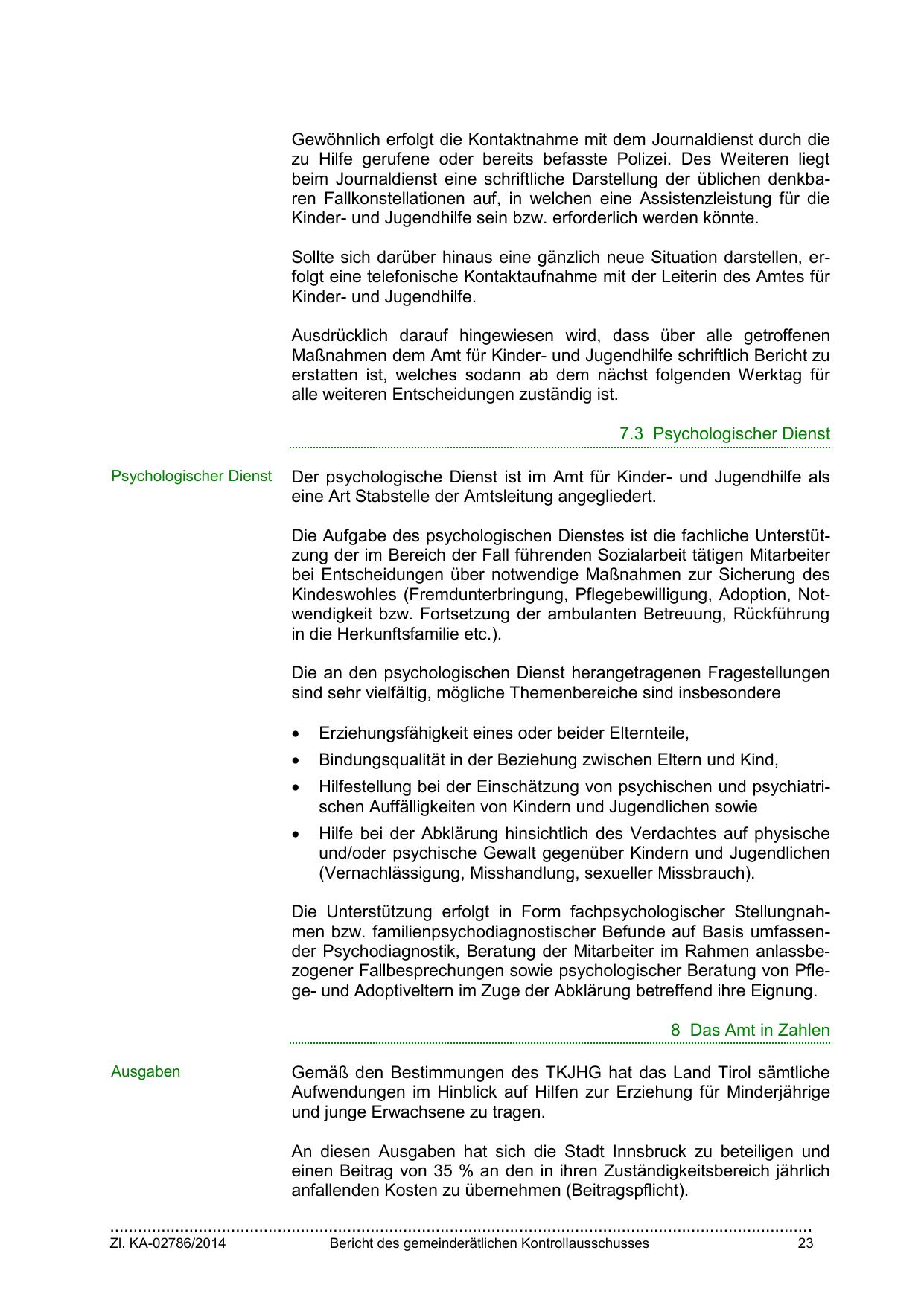 Die Aufgabe des psychologischen Dienstes ist die fachliche Unterstützung der im Bereich der Fall führenden Sozialarbeit tätigen Mitarbeiter