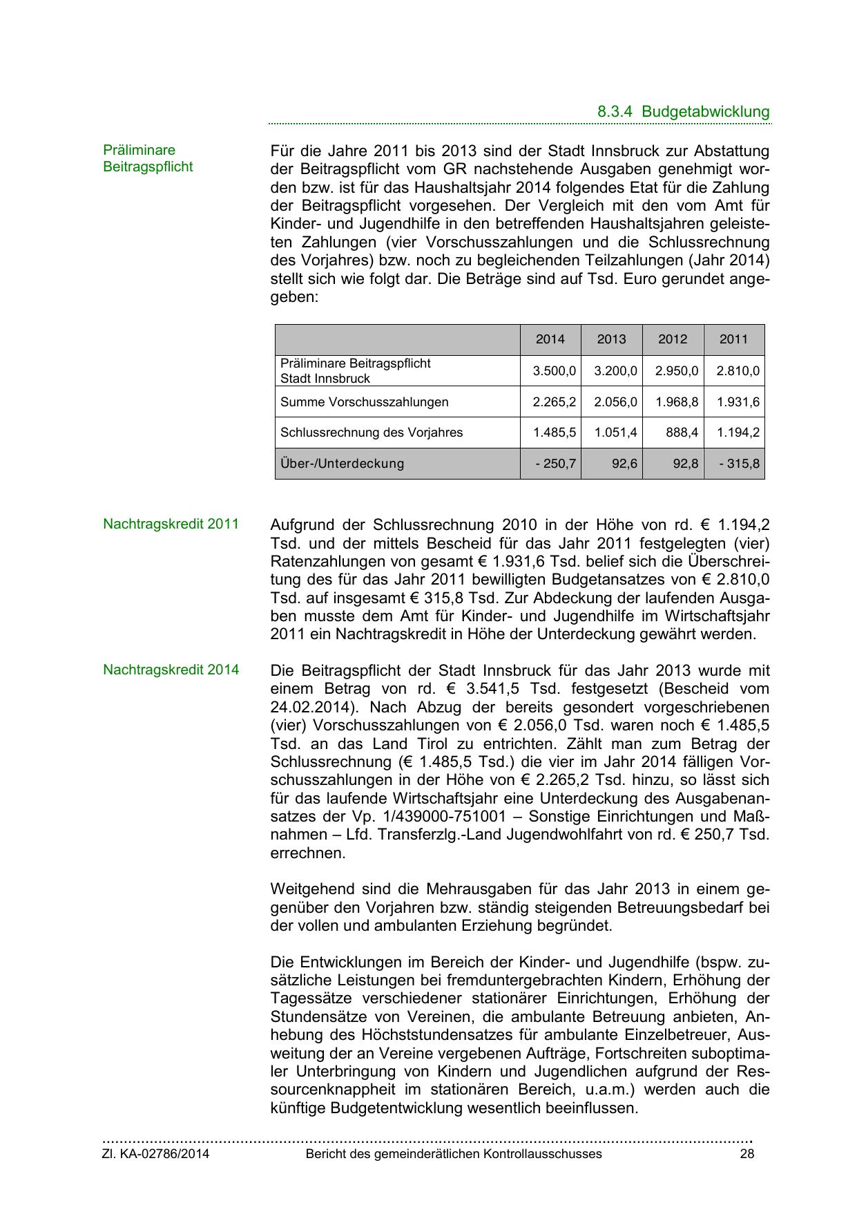 Für die Jahre 2011 bis 2013 sind der Stadt Innsbruck zur Abstattung
