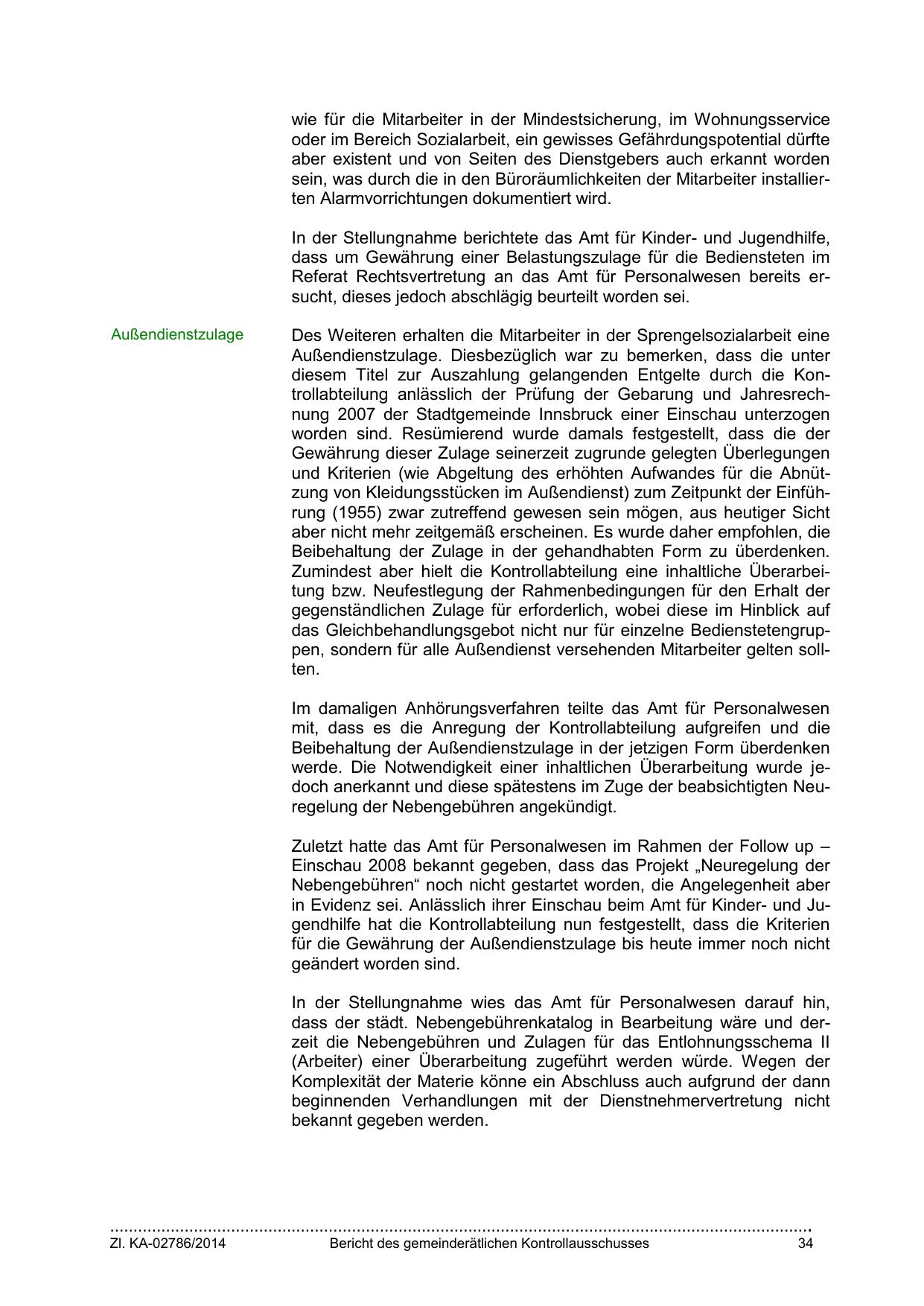 diesem Titel zur Auszahlung gelangenden Entgelte durch die Kontrollabteilung anlässlich der Prüfung der Gebarung und Jahresrechnung 2007 der Stadtgemeinde Innsbruck einer Einschau unterzogen