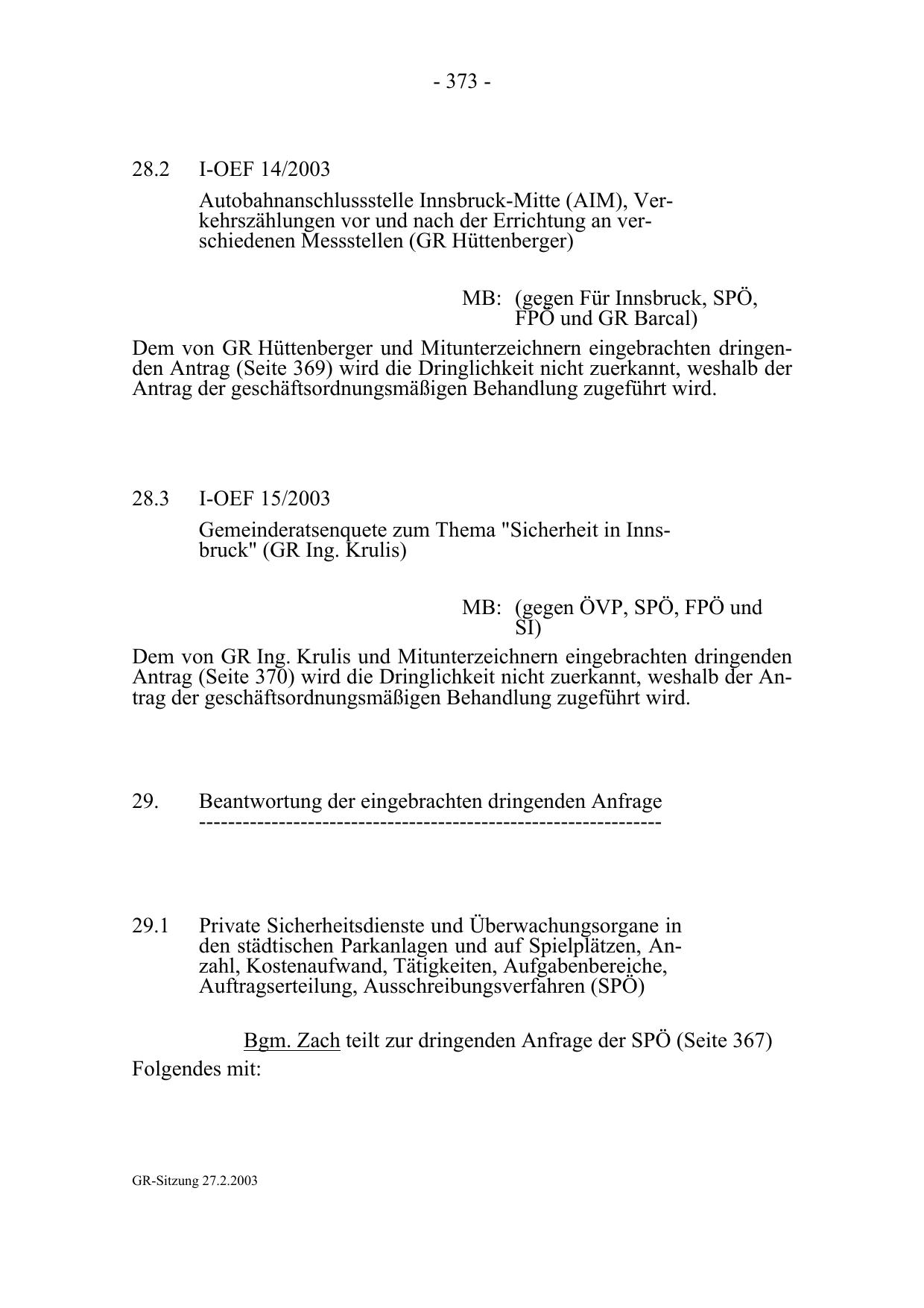 GR-Sitzung 27.2.2003