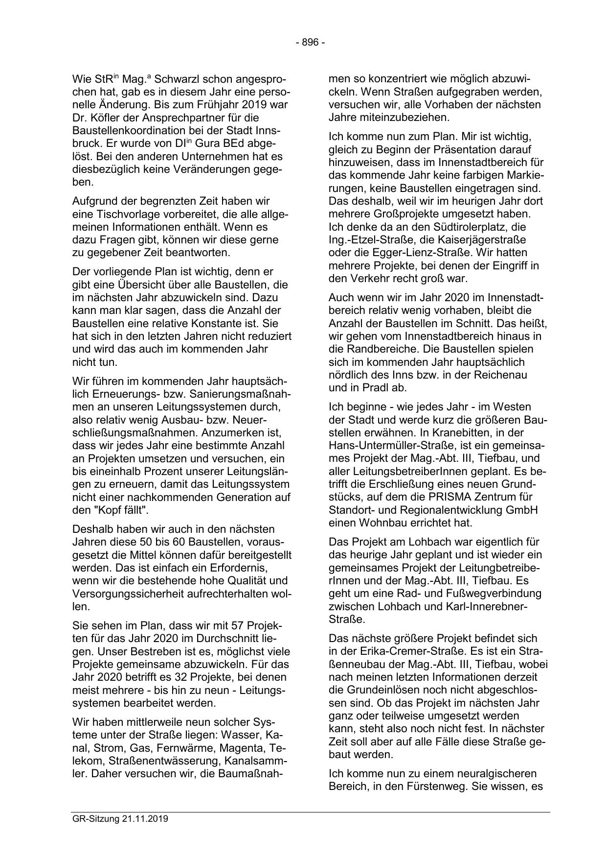 der Stadt und werde kurz die größeren Baustellen erwähnen. In Kranebitten, in der