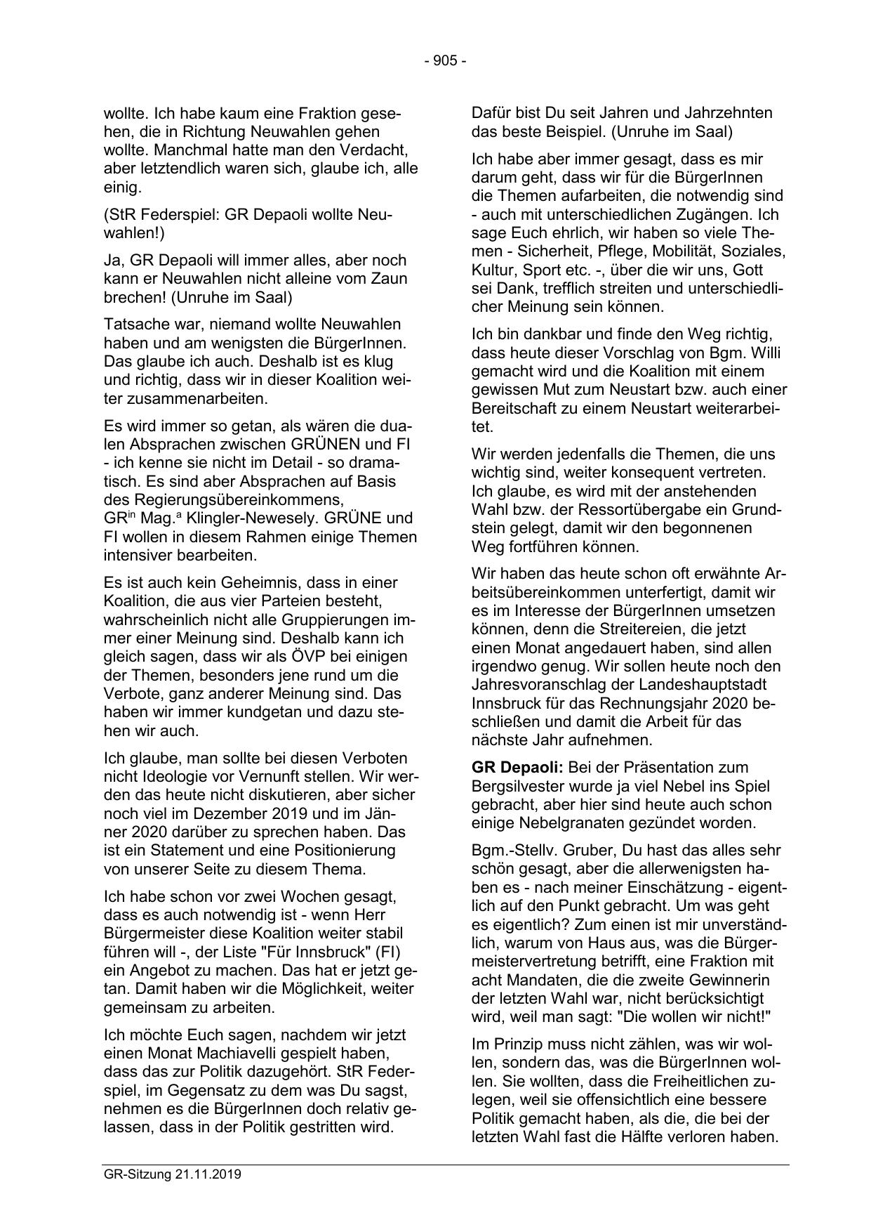 (StR Federspiel: GR Depaoli wollte Neuwahlen!)