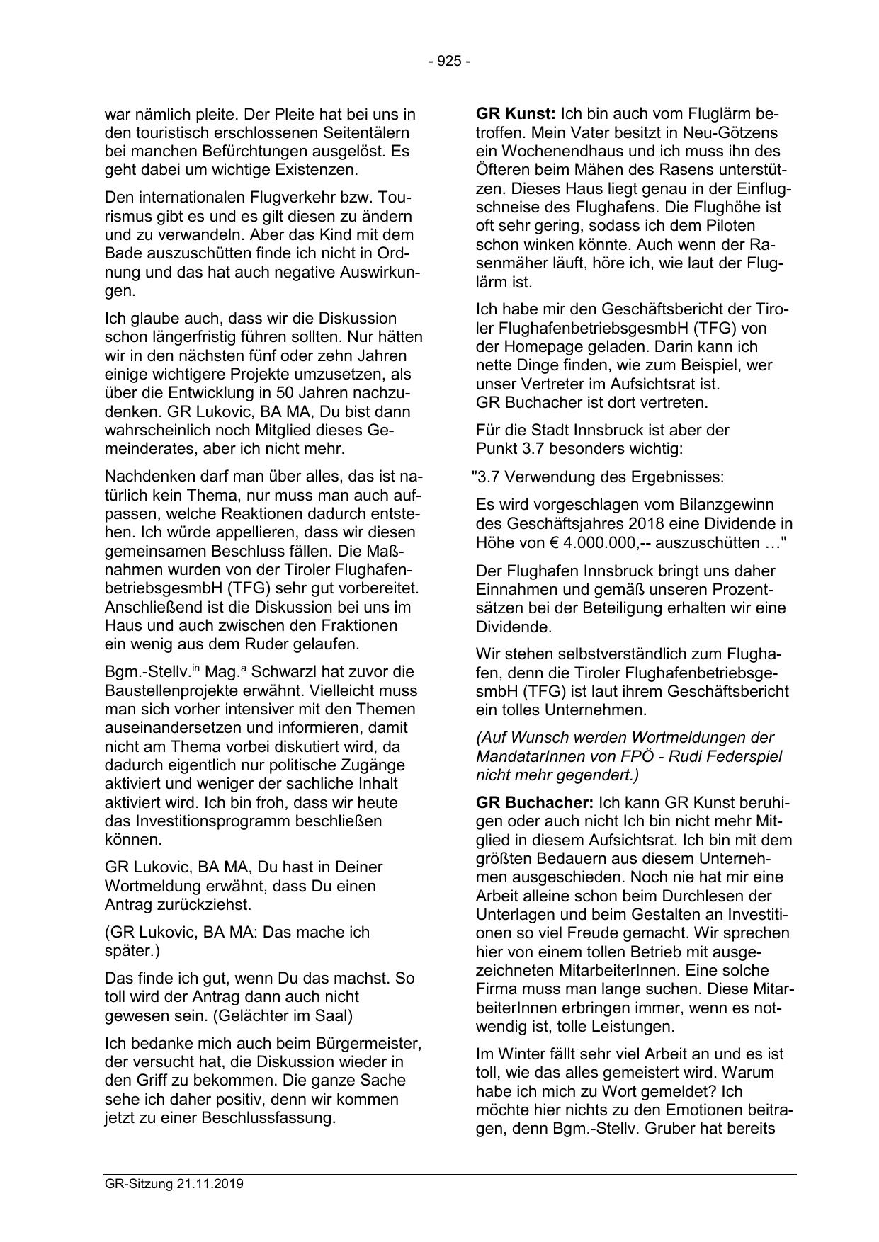 GR Kunst: Ich bin auch vom Fluglärm betroffen. Mein Vater besitzt in Neu-Götzens