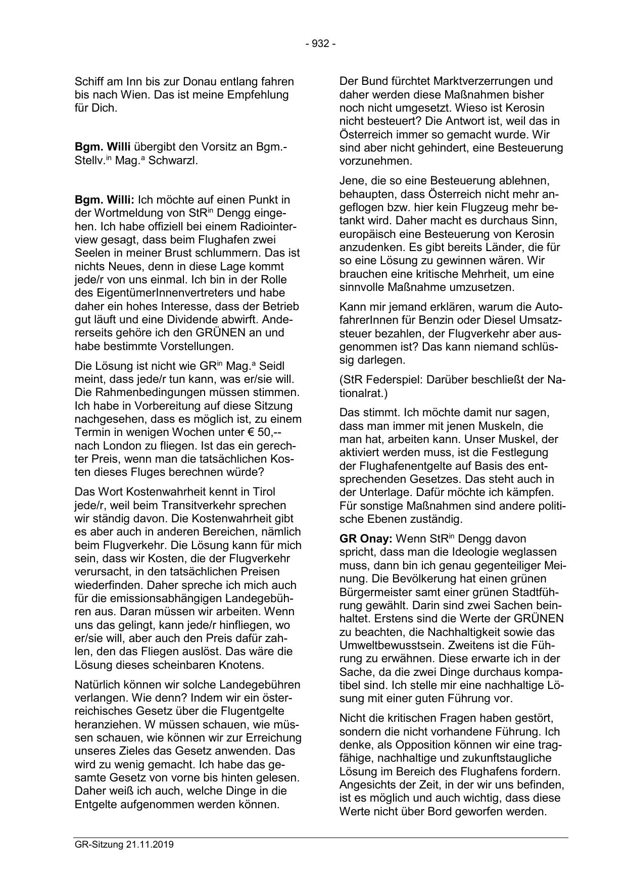 der Wortmeldung von StRin Dengg eingehen. Ich habe offiziell bei einem Radiointerview gesagt, dass beim Flughafen zwei