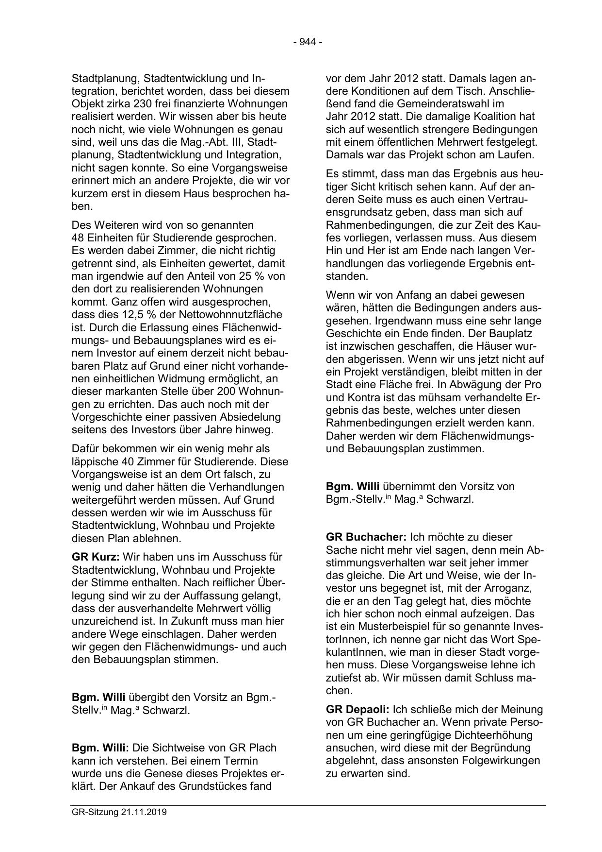 von GR Buchacher an. Wenn private Personen um eine geringfügige Dichteerhöhung