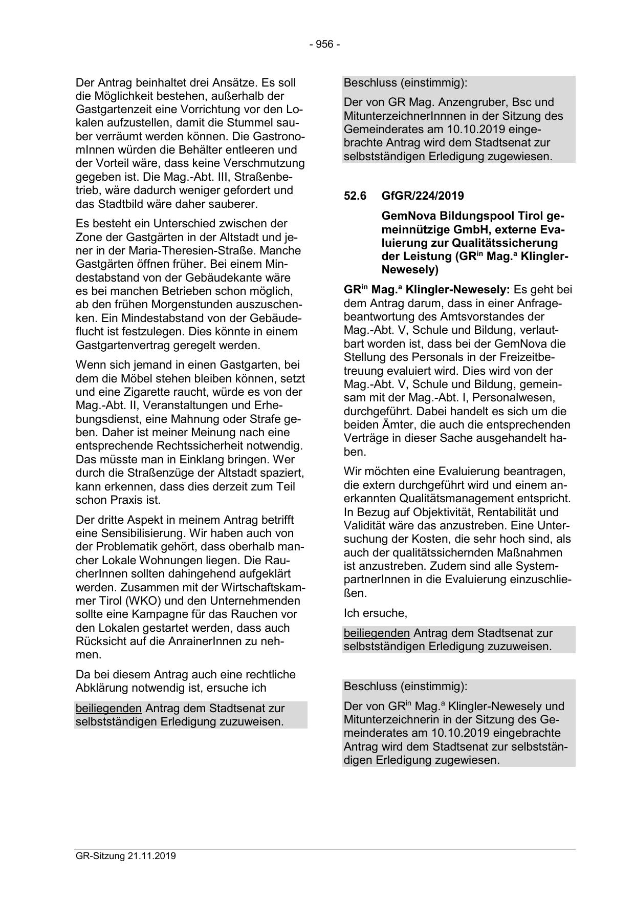 Mitunterzeichnerin in der Sitzung des Gemeinderates am 10.10.2019 eingebrachte