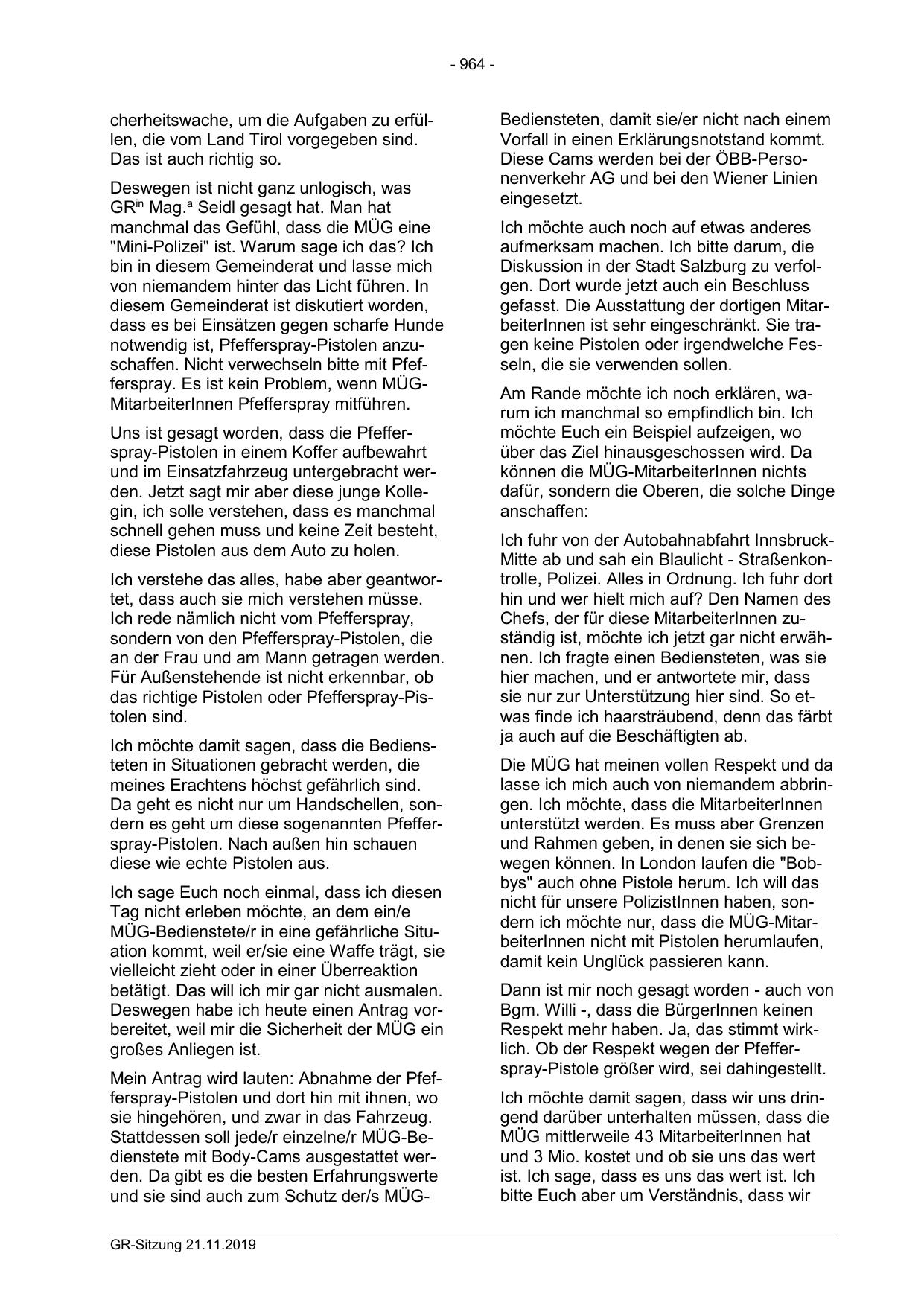 nicht für unsere PolizistInnen haben, sondern ich möchte nur, dass die MÜG-MitarbeiterInnen nicht mit Pistolen herumlaufen,