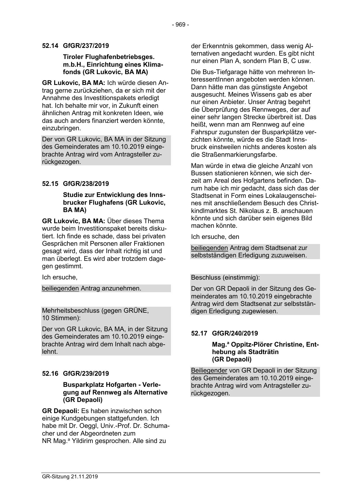 Der von GR Depaoli in der Sitzung des Gemeinderates am 10.10.2019 eingebrachte