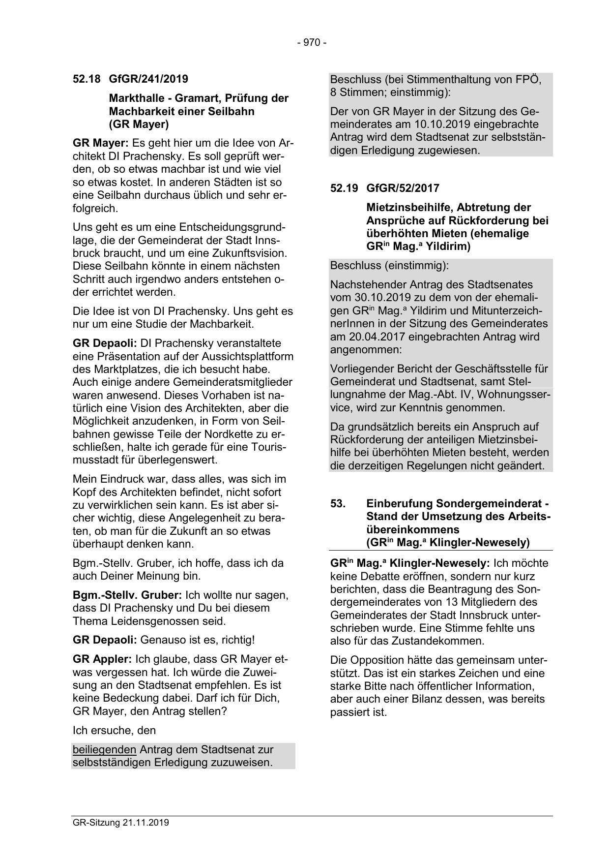 Gemeinderates der Stadt Innsbruck unterschrieben wurde. Eine Stimme fehlte uns