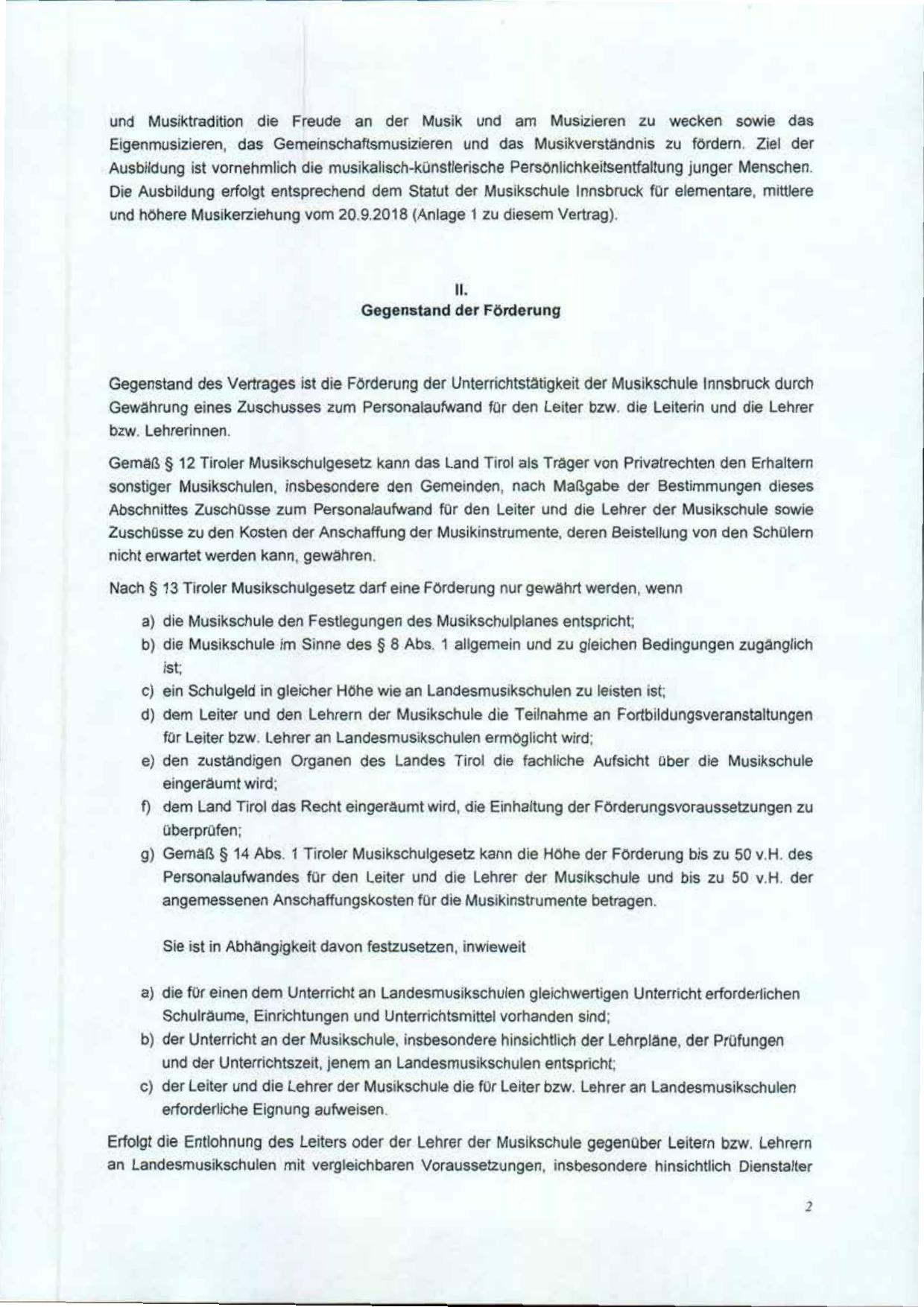 Gegenstand des Vertrages ist die FOrderung der Unterrichtstetigkeit der Musikschule lnnsbruck durch
