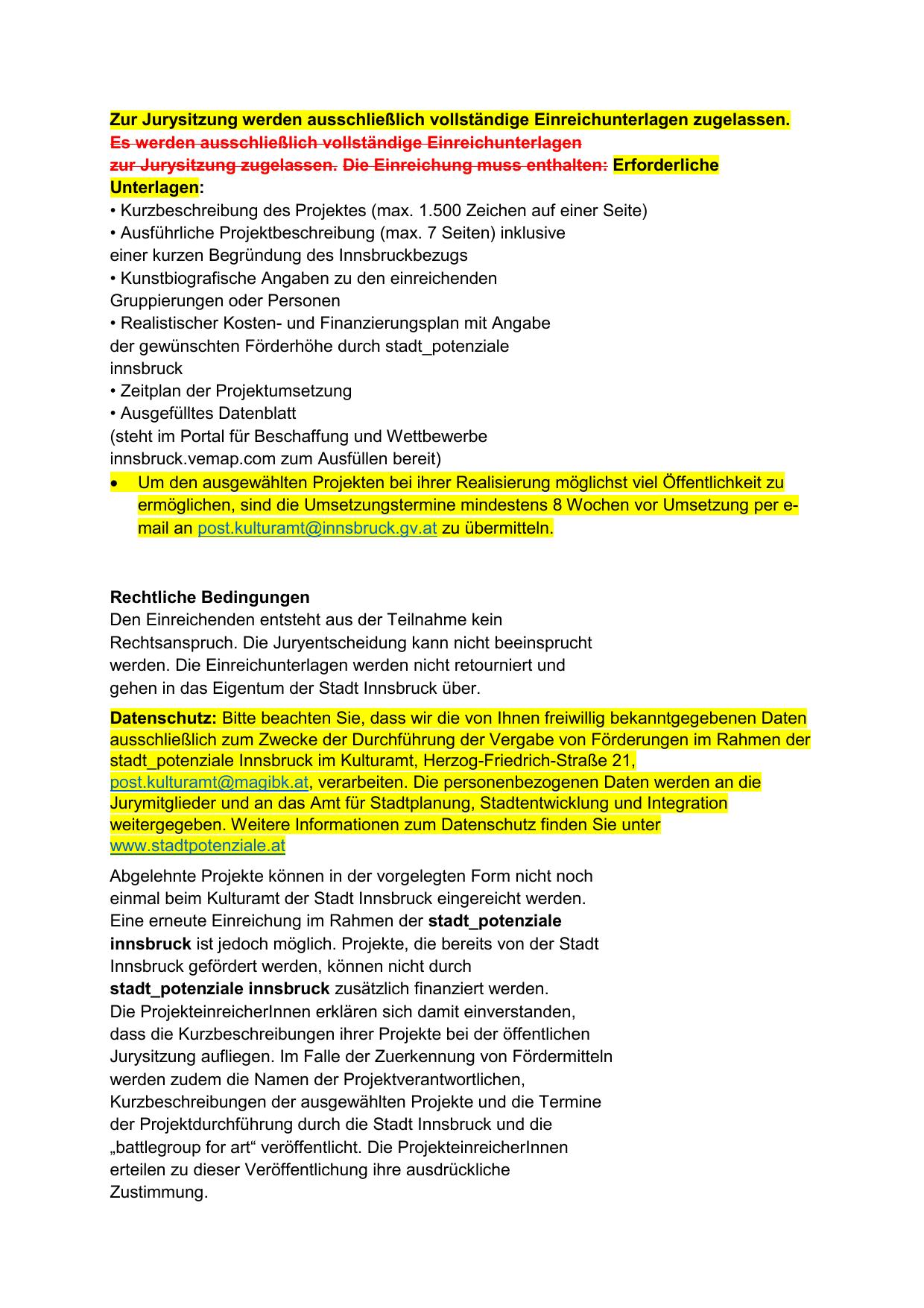 einmal beim Kulturamt der Stadt Innsbruck eingereicht werden.