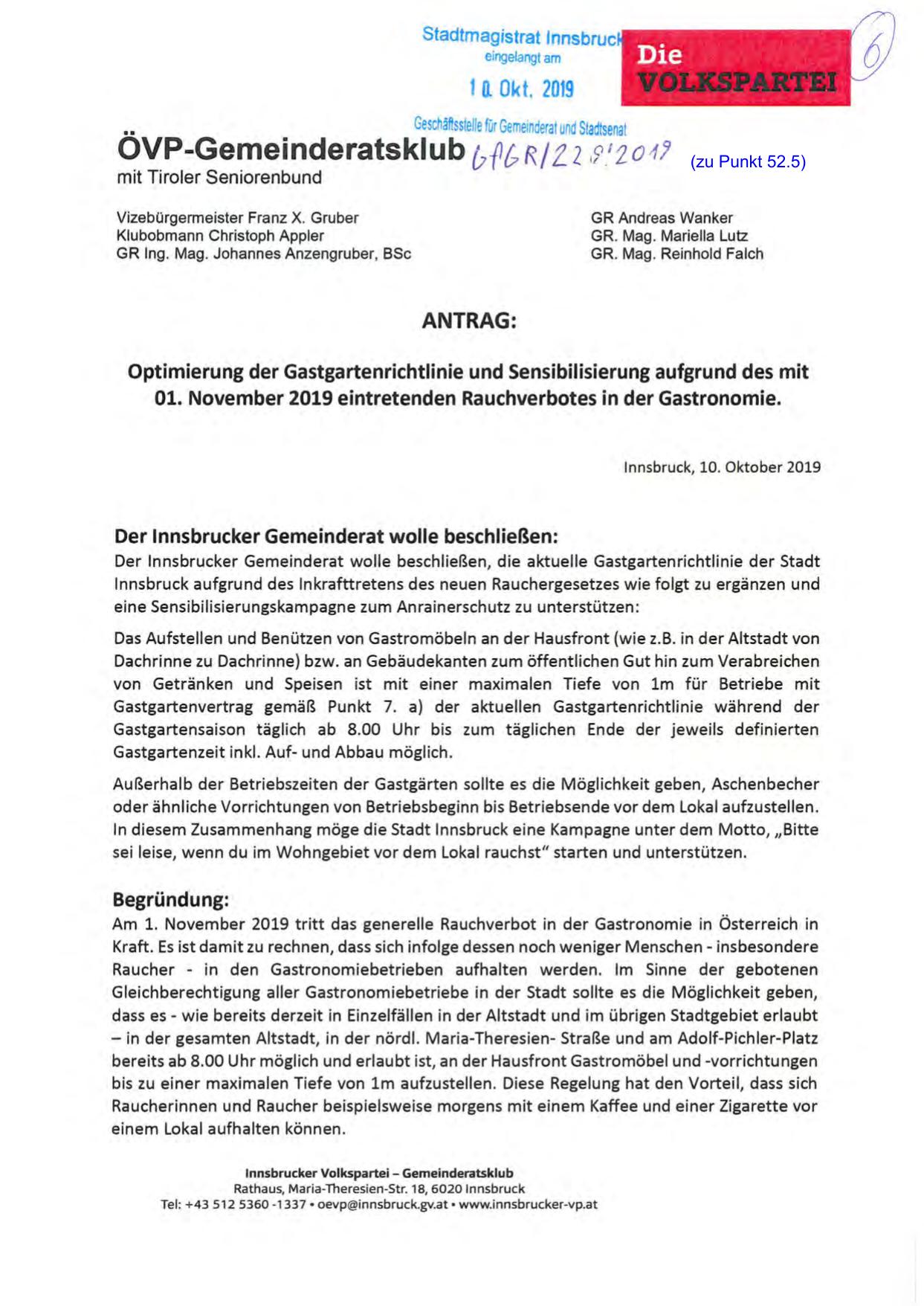 Tel: +43 512 5360 -1337 • oevp@innsbruck.gv.at • www.innsbrucker-vp.at