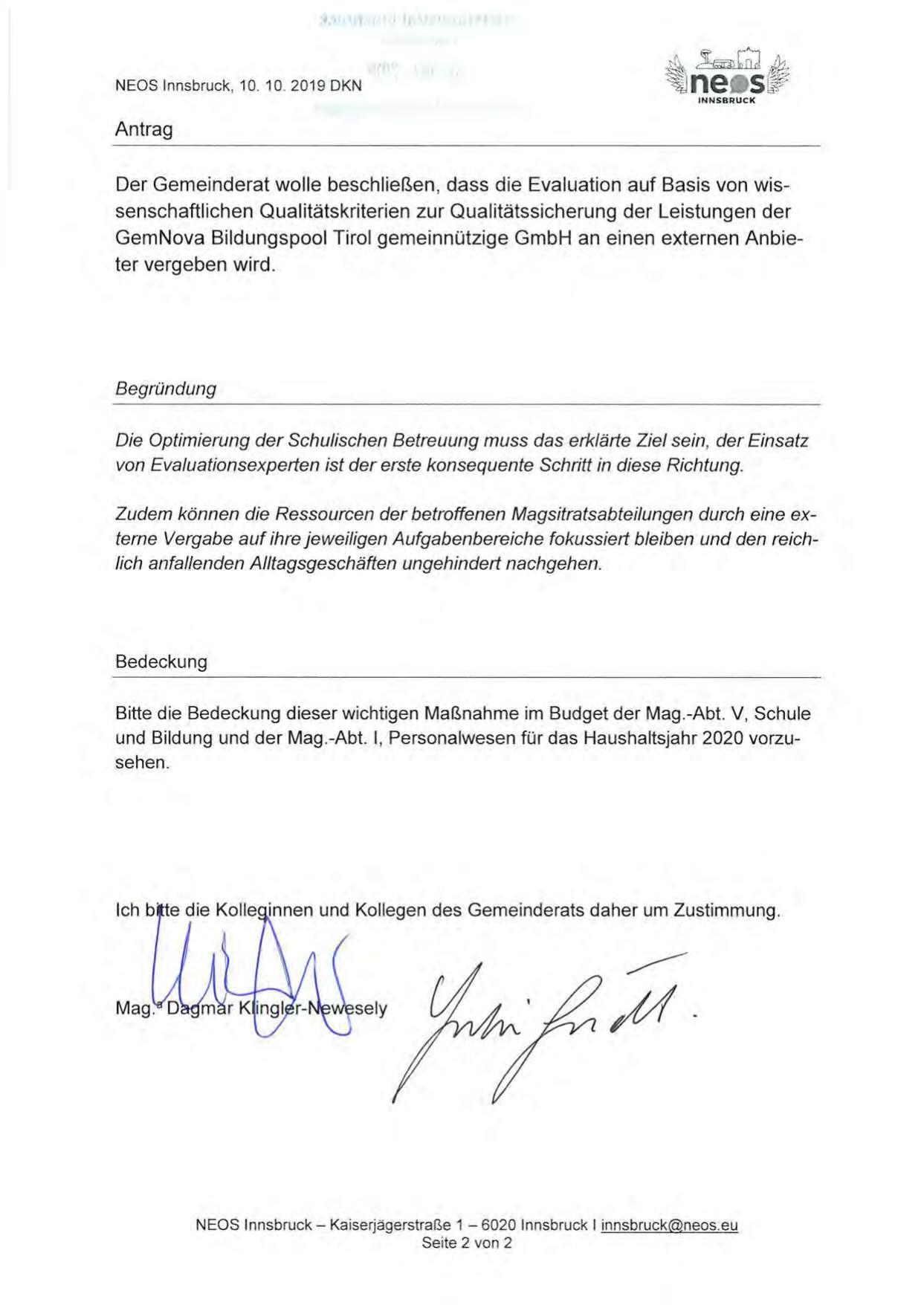NEOS Innsbruck, 10. 10. 2019 DKN