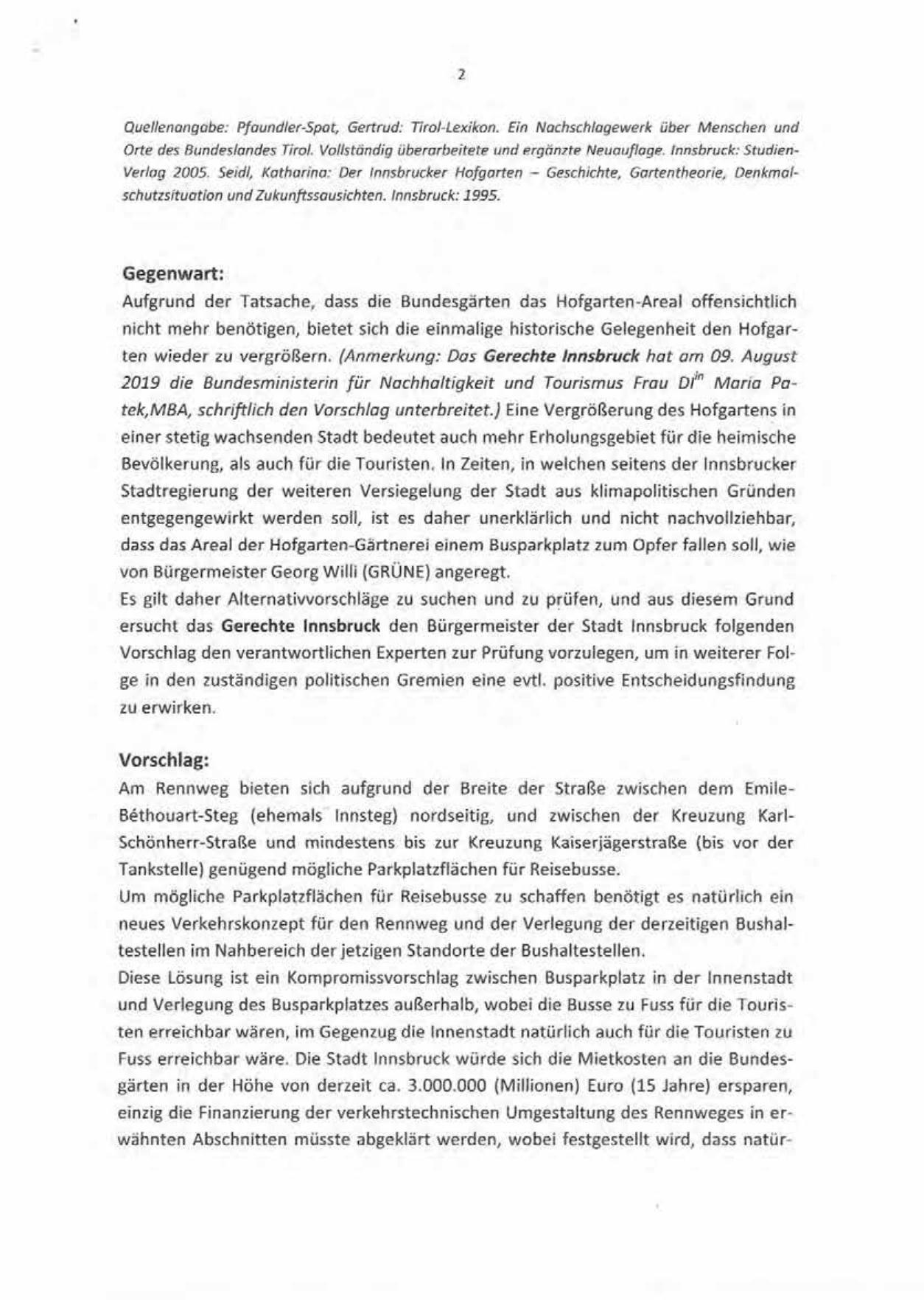 2019 die Bundesministerin für Nachhaltigkeit und Tourismus Frau oln Maria Patek,MBA, schriftlich den Vorschlag unterbreitet.) Eine Vergrößerung des Hofgartens in