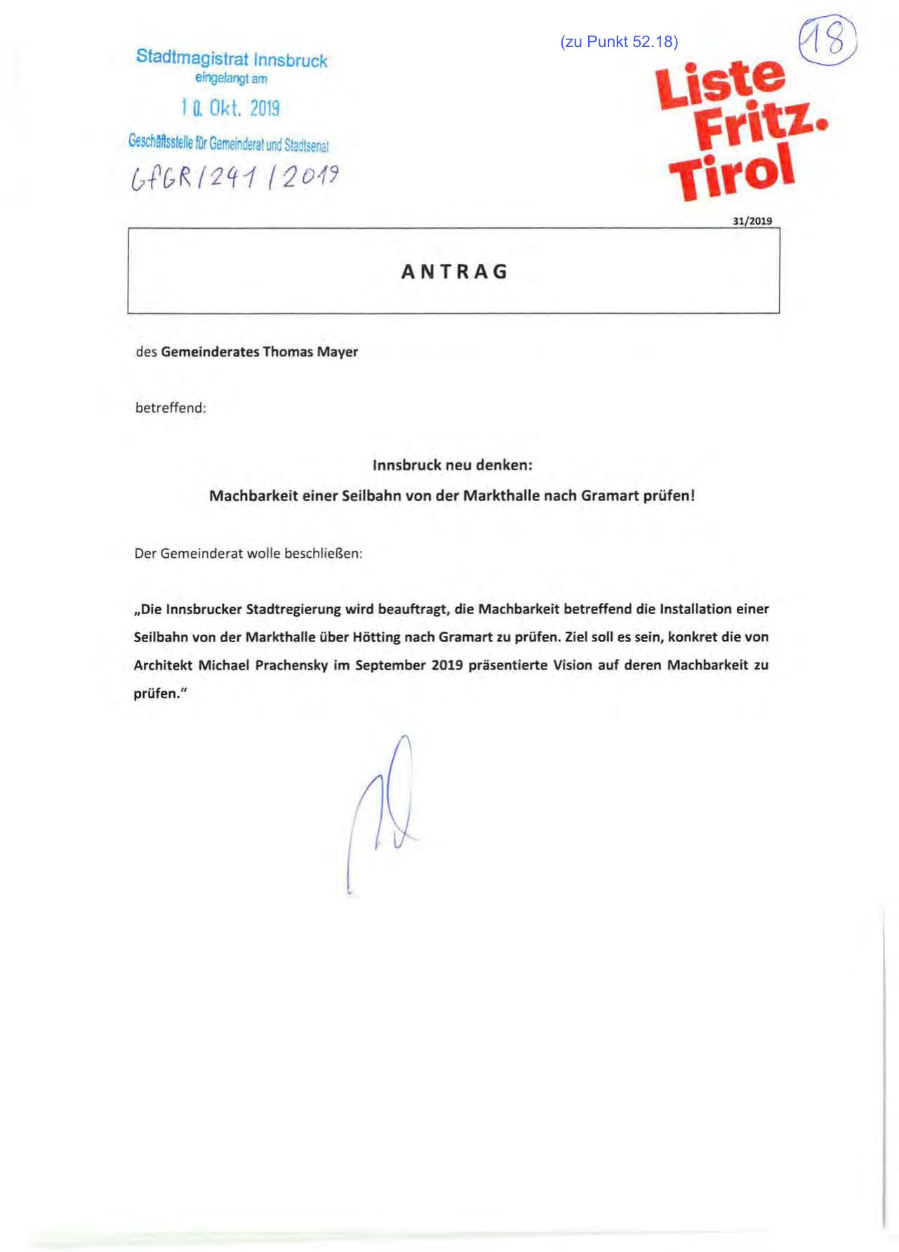 „Die lnnsbrucker Stadtregierung wird beauftragt, die Machbarkeit betreffend die Installation einer