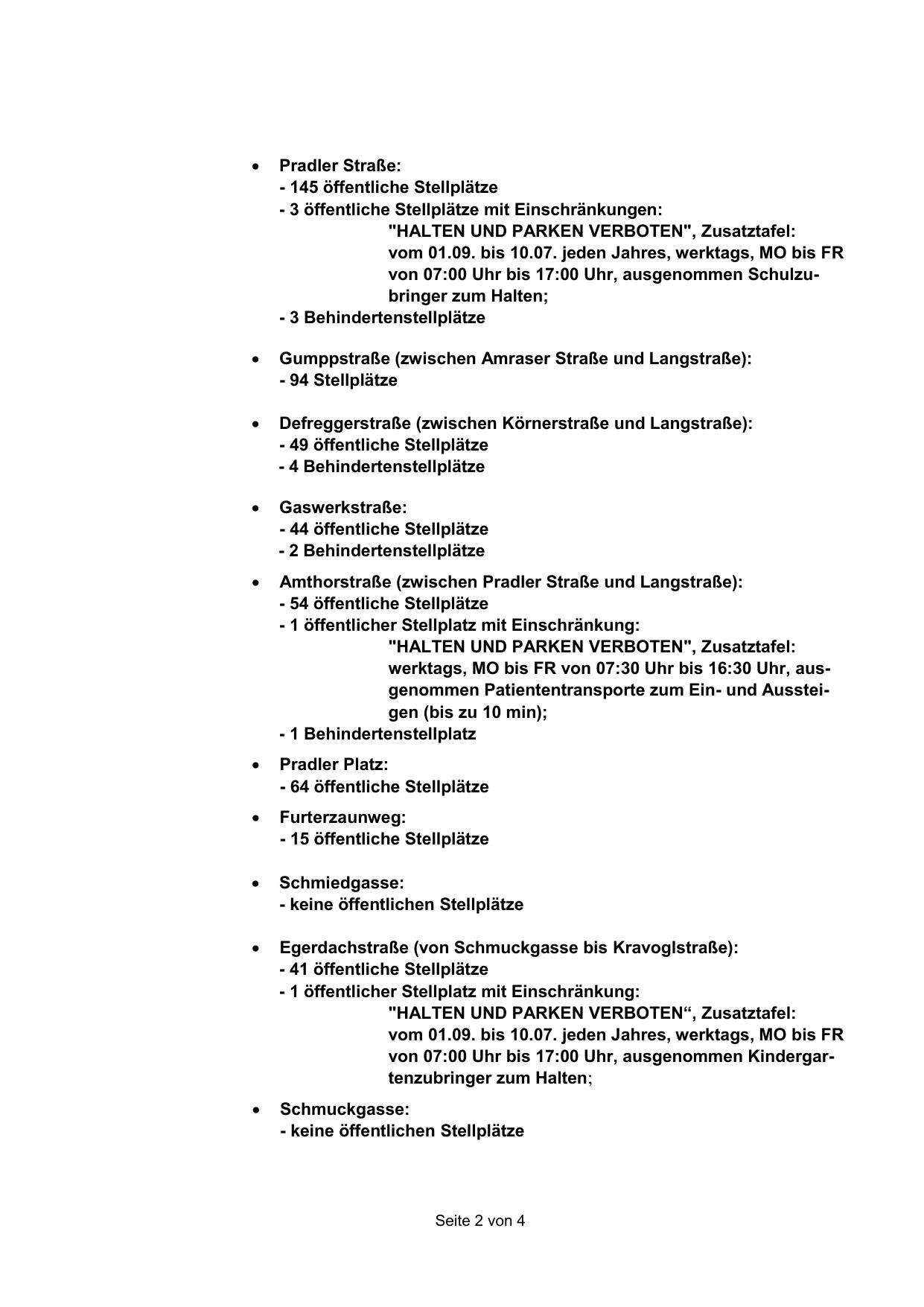 - 3 öffentliche Stellplätze mit Einschränkungen: