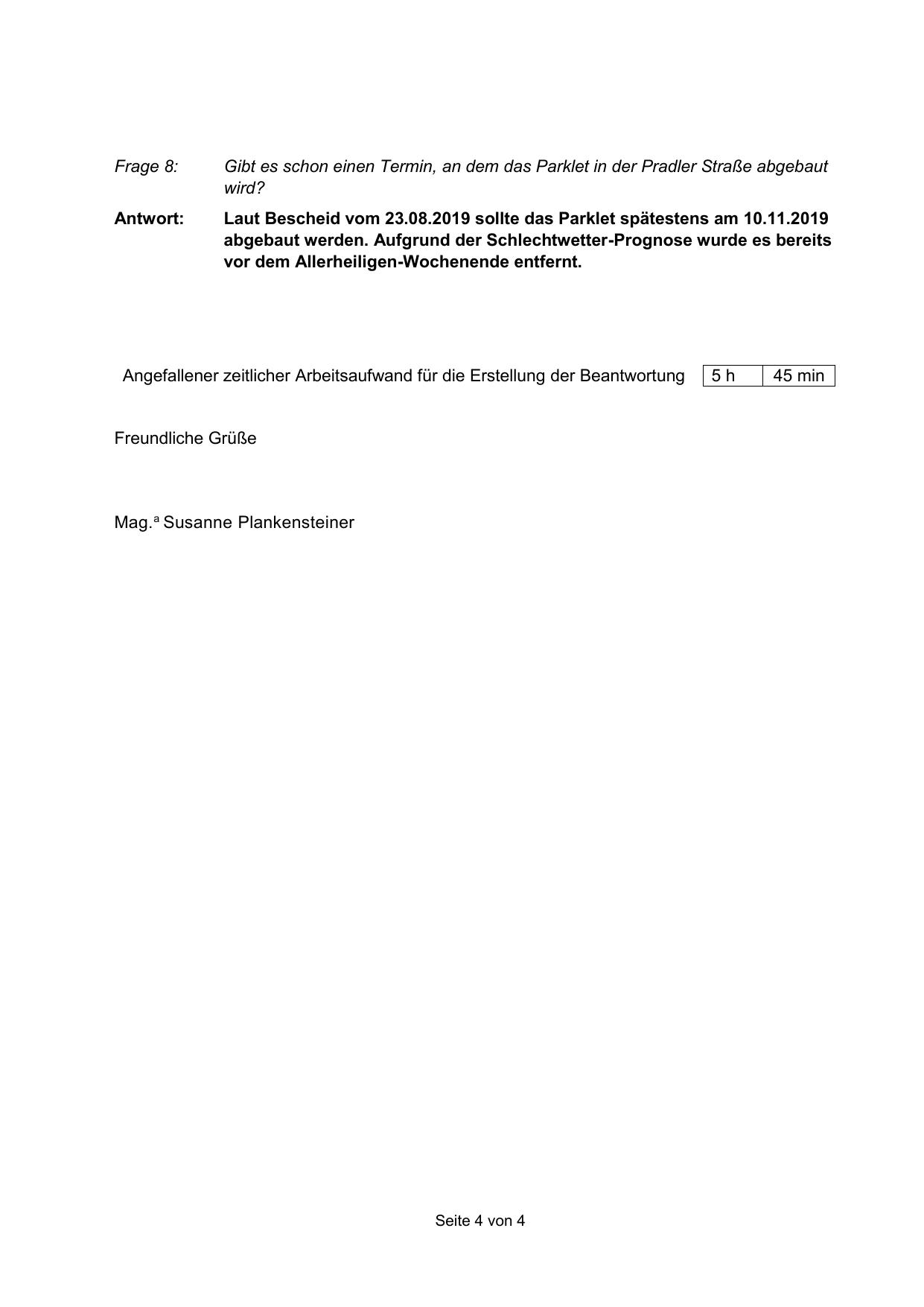 Laut Bescheid vom 23.08.2019 sollte das Parklet spätestens am 10.11.2019