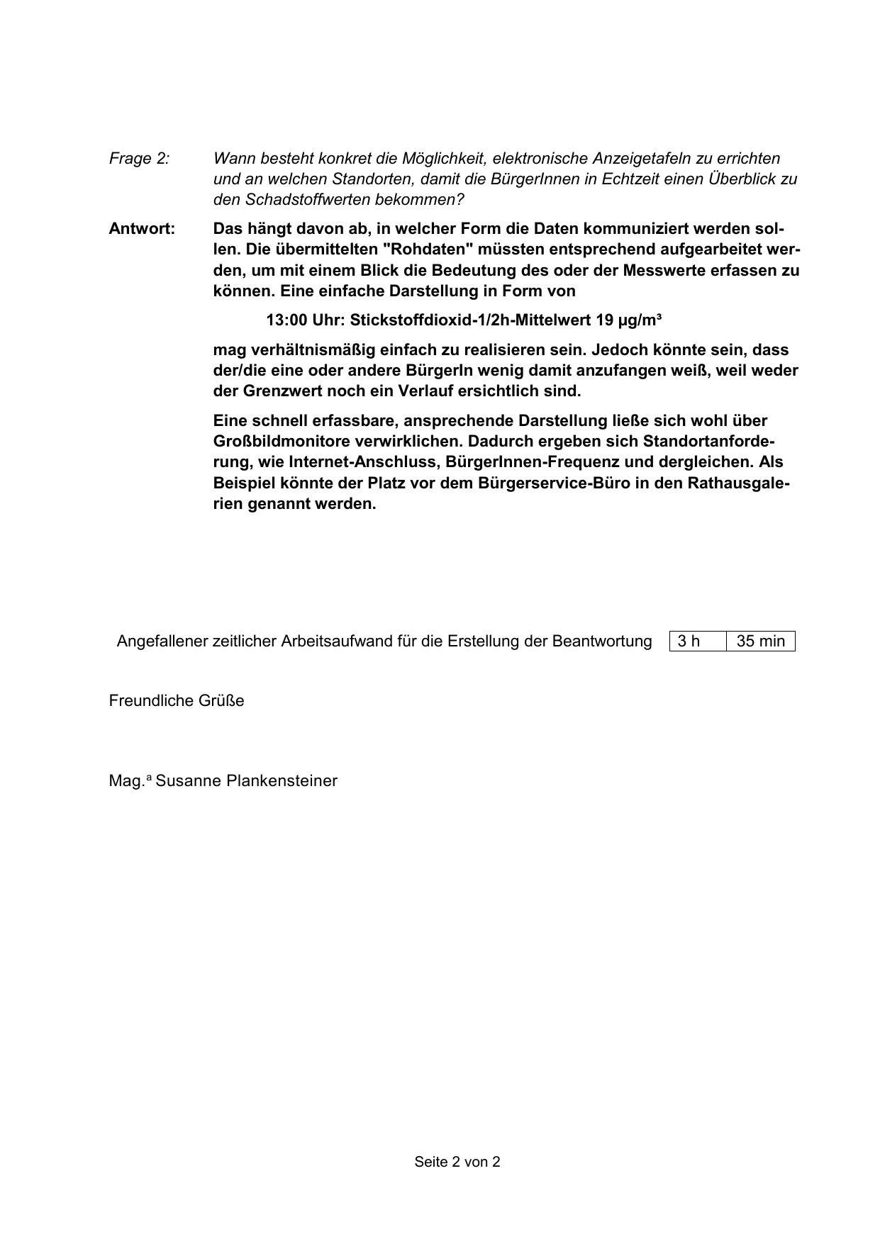 Angefallener zeitlicher Arbeitsaufwand für die Erstellung der Beantwortung