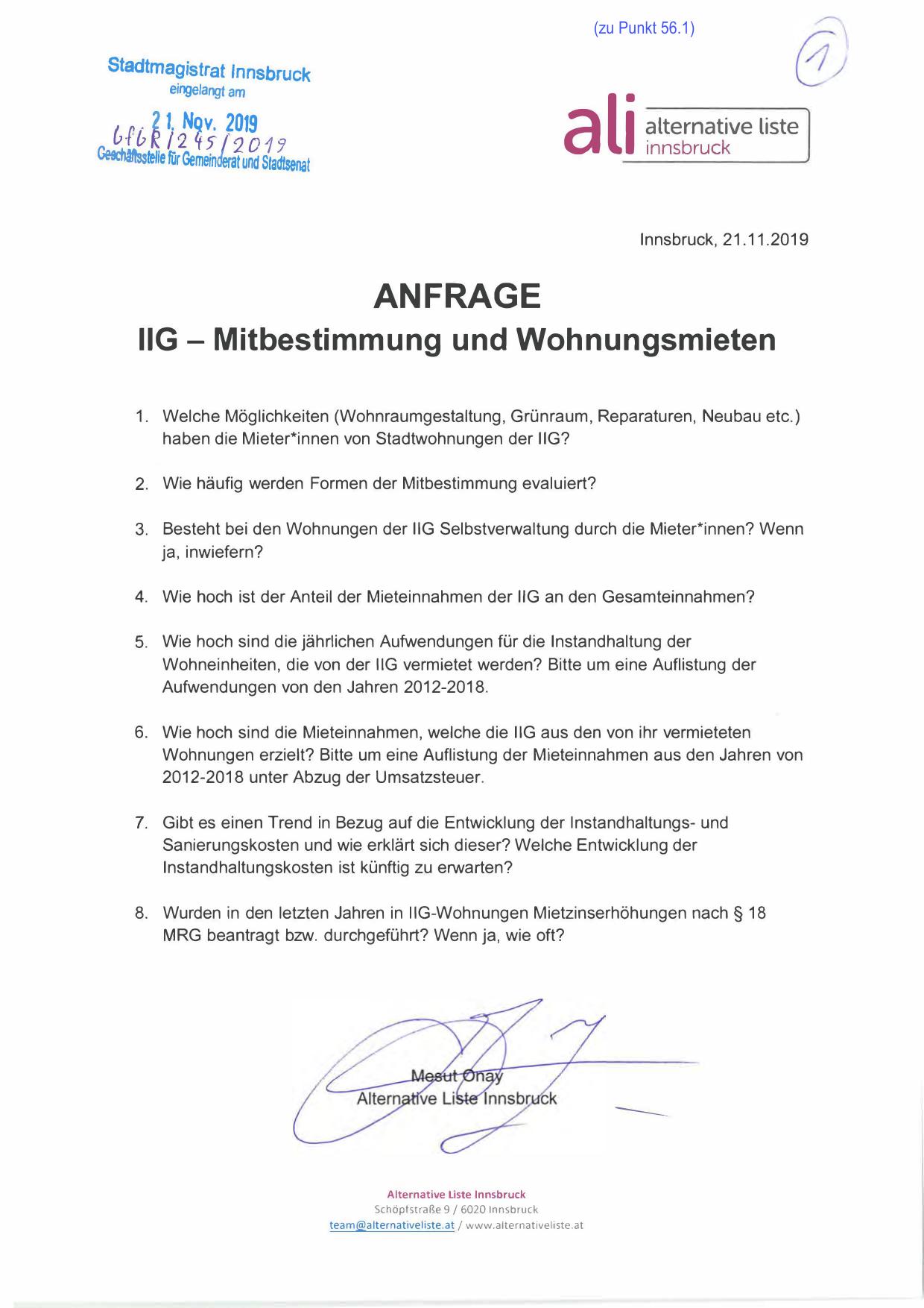 Wohneinheiten, die von der IIG vermietet werden? Bitte um eine Auflistung der