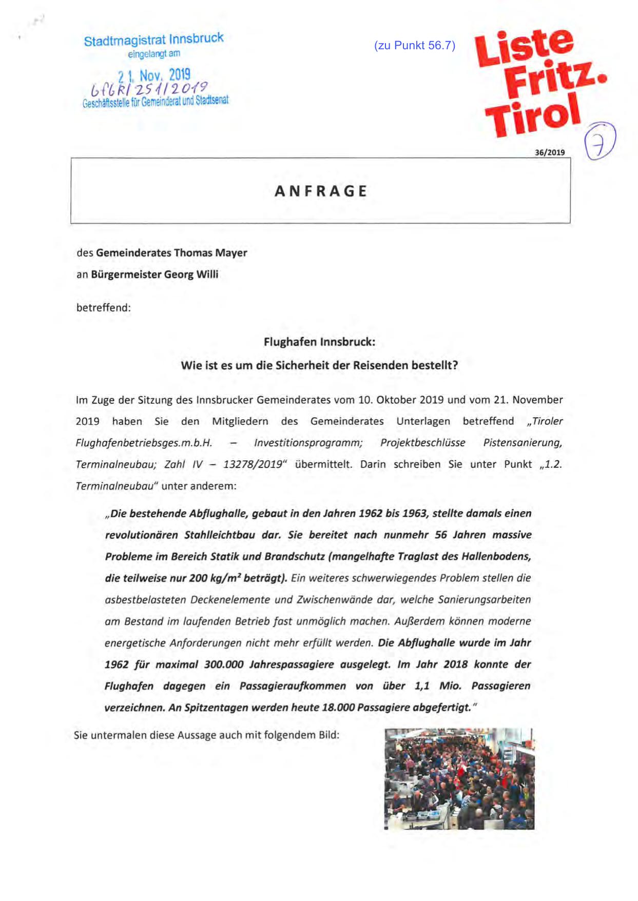 Im Zuge der Sitzung des lnnsbrucker Gemeinderates vom 10. Oktober 2019 und vom 21. November
