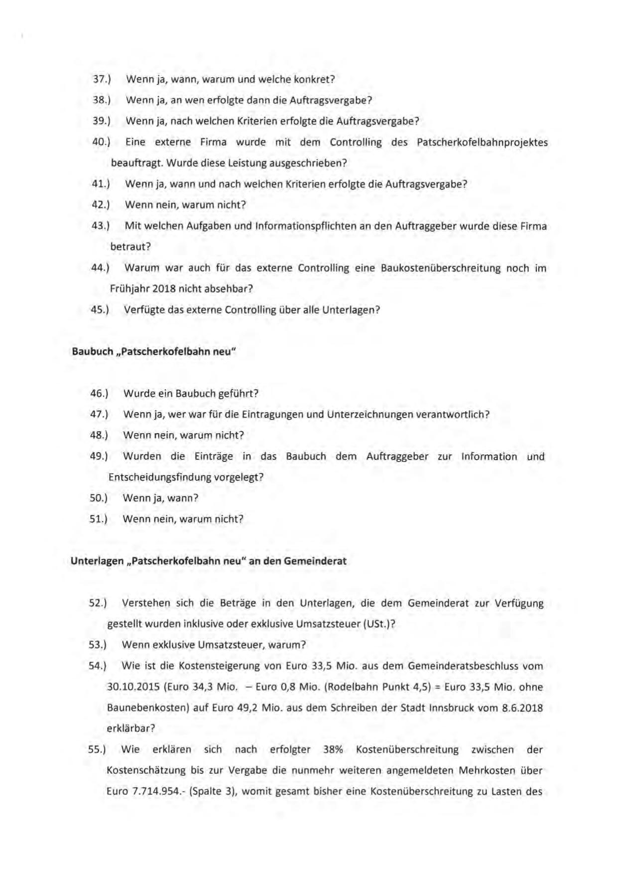 Baunebenkosten) auf Euro 49,2 Mio. aus dem Schreiben der Stadt Innsbruck vom 8.6.2018