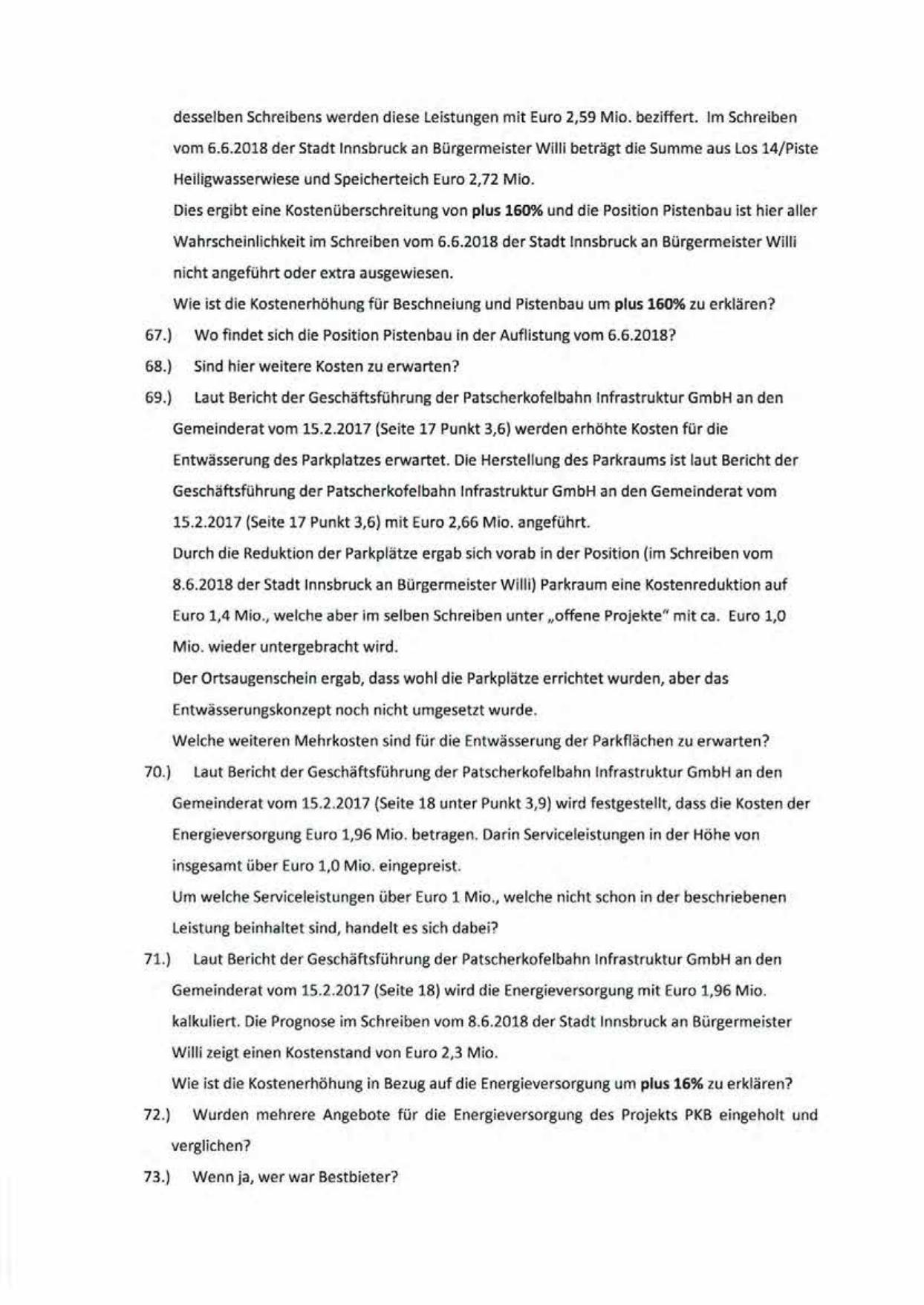 Geschäftsführung de r Patscherkofe lbahn Infrastrukt ur GmbH an den Gemeinderat vom