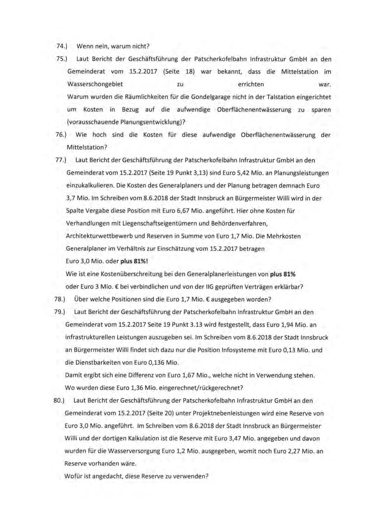 Euro 3,0 Mio. angeführt. Im Schreiben vom 8.6.2018 der Stadt Innsbruck an Bürgermeister